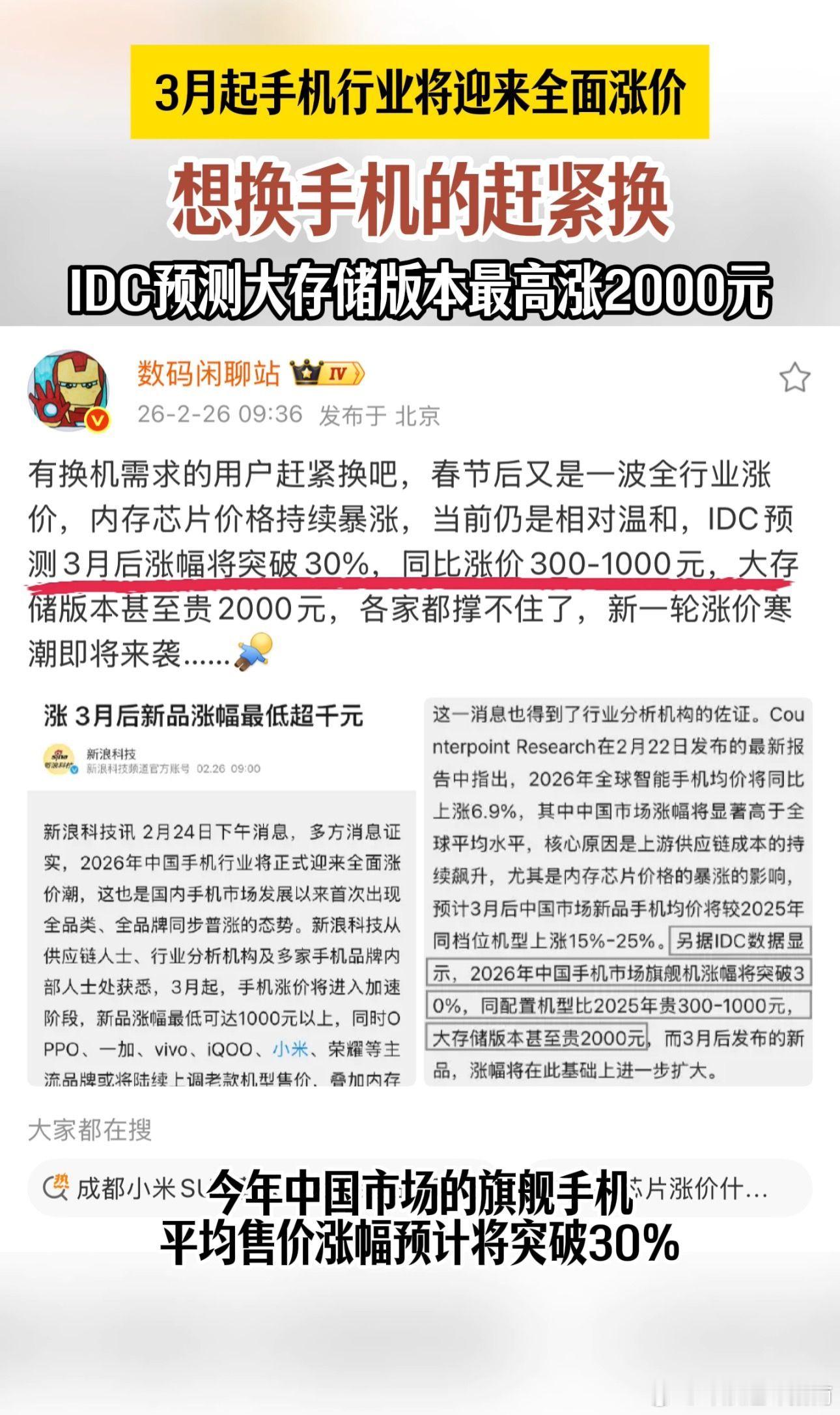 还好提前知道,不然直接错亿。主流品牌同配置手机的涨价可以预见手机面临涨价大内存手机销量将暴增,作为手机迎来涨价前最后窗口期抓紧挑选才是王道,据说就连老款机型也有调价动作,大内存版本溢价更是严重预计可能要突破2k,犹豫就会败北,要换手机的uu们抓紧了~