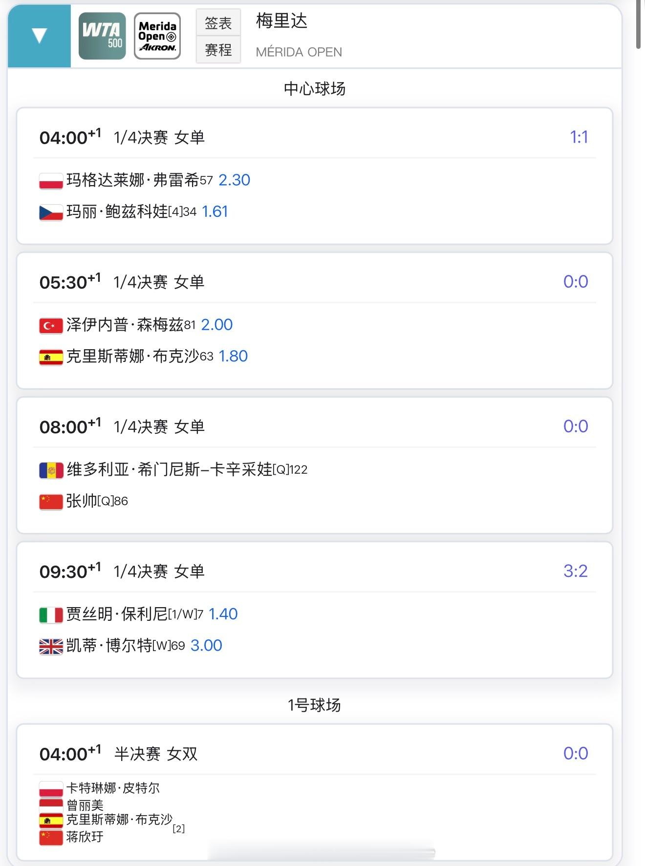 【今日比赛赛程+直播赛程】+8:00吴易昺vs科博利+10:00张帅vs纳瓦罗