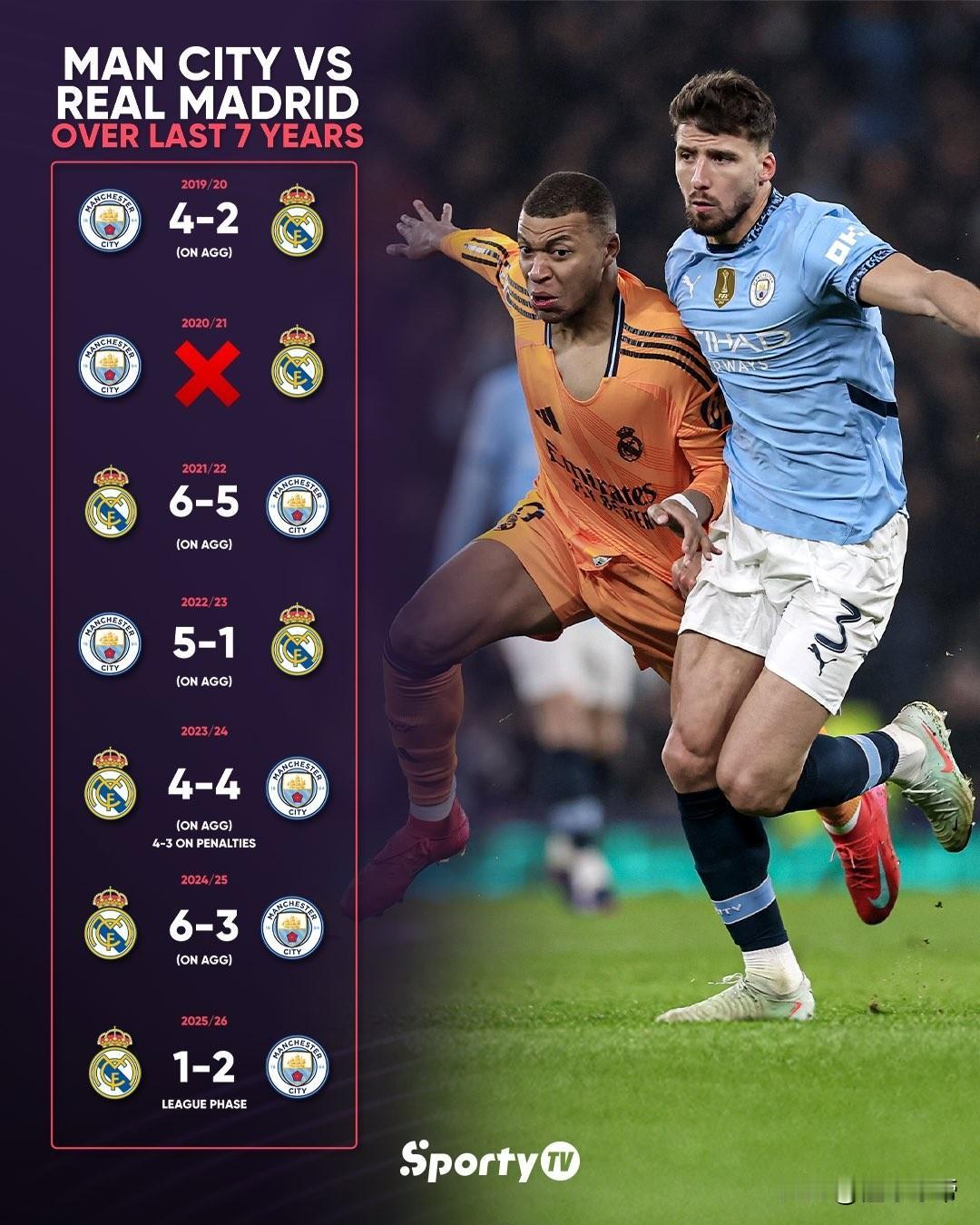 如果今晚皇马在欧冠淘汰赛再次抽到曼城,那么欧冠抽签就真的有猫腻了! 今晚19点欧足联将进行欧冠淘汰赛的抽签仪式,本次抽签仪式最大的看点就是皇马能不能继续抽到曼联了,因为此前皇马已经连续5年在欧冠抽到了曼城了(上赛季是淘汰赛附加赛),可以说真的是太有缘分了。 自从19-20赛季开始,皇马和曼城在7个赛季的欧冠比赛中抽到了6次,只有20-21赛季没有遇到,这个概率仅为0.038%,如此低的概率都能被皇马遇到,要是说欧足联没有猫腻是没人相信的。 因此今晚就看皇马是不是又要继续抽到曼城了,要是再次抽到曼城的话,那么欧冠抽签仪式就完全是剧本了,欧足联为了收视率,每年都要安排皇马VS曼城和巴黎vS巴萨,一点创新都没有了。