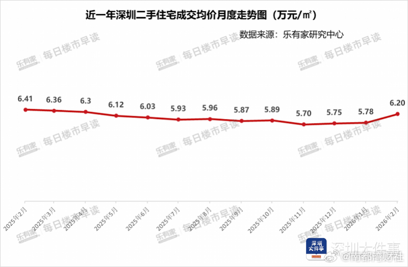 【数据显示,#深圳二手房价格连续3个月上涨#】#深圳二手房价连续3月上涨##深圳楼市企稳迹象明显#乐有家研究中心2月27日数据显示,2月深圳二手住宅成交均价达6.2万元/㎡,环比上涨7.3%,连续3个月上涨。乐有家研究中心认为,价格上涨一方面有结构性因素影响,2月800万-1000万元改善房源成交占比上升明显,上涨了3.4个百分点;另一方面,随着长周期的调整,价格已逐步调整到位,随着市场预期及信心增强,价格企稳迹象明显。开年后深圳市场快速活跃,咨询量及成交量均已恢复至节前水平,叠加市场信心及预期向好、学区房热度带动,小阳春正加速到来。 新房方面,靠近宝中商圈的珺悦名都成交数据引人关注,1天成交50套,带动楼市信心提升。(来源:南都)