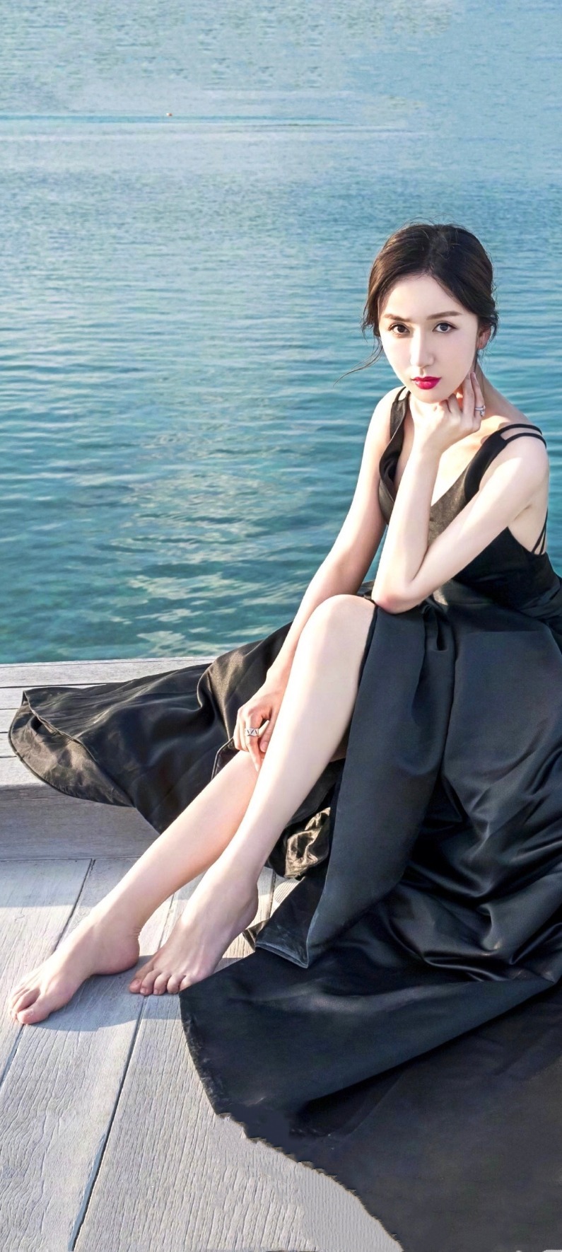 娄艺潇穿搭壁纸:裙装光脚丫美腿美图集。娄艺潇