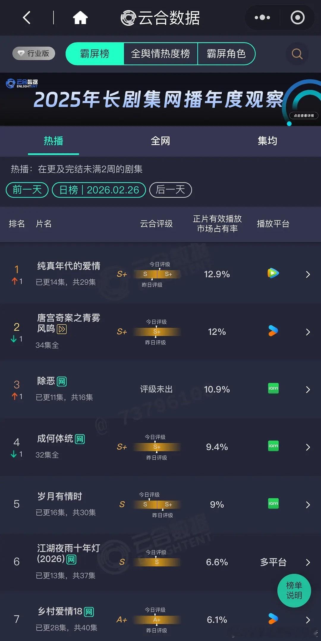 陈飞宇的《纯真年代的爱情》登顶了