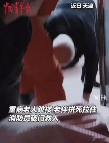 “这份爱太沉重,太伟大了!”天津,重病的奶奶,不愿再拖累老伴,就从9楼的阳台跳下,了结自己的生命,爷爷发现了,关键时刻,把她给拉住了,他拼尽全力,抓住老伴,等到消防员的赶来,老伴被救下,爷爷已经累得站都站不住了,网友们说:奶奶是不想拖累爷爷,但爷爷也不愿失去奶奶。 病重的大娘躺在床上,看着老伴,为了她的病,日夜操心,人也日益憔悴了,她真的很心疼老伴。 自从得病之后,病痛一天天地折磨着她的意志,家中的积蓄也一天天变少,都差不多花在她身上了,她实在不愿意再拖累老伴了。 她这个年纪,得了这么重的病,还要拖累老伴照顾她,她会压垮这个家的。 想到这些,她就特别的痛苦,身体上的病痛她能承受,可老伴的情,让她觉得太沉重了,再这样下去,她就会花完家中的积蓄,她不愿这样。 活到这个年龄,她不愿意因为重病,带着疼痛的折磨过日子,她想了很久很久,终于做出了一个决定,不再拖累老伴。 她趁老伴一个不注意,拖着自己虚弱的身子,来到了阳台,她爬上了阳台,回头看了一眼老伴经常坐的位置,回想着老伴对她的好。 少年夫妻老来伴,在她重病的这段时间,老伴真的是对她尽心尽力了,她想和老伴好好告个别,可她不能让老伴看到,她以这样的方式离开。 她只能心里默默地跟老伴说一声再见了,她迷上双眼,就准备往下跳。 她所住的楼层是9楼,这一跳,她就解放了,再也不用承受病痛的折磨了,也不会拖累老伴了。 就在她跳下去的这一刻,就在她以为自己与世长别了,她的老伴发现了。 大娘的老伴大爷,远远地看到老伴爬到阳台上,他马上知道老伴的心思,老伴想用这样的方式,让他不用这么苦,不用那么累地照顾她。 大爷哪里舍得大娘就这么离开他,曾经的风风雨雨,他们俩都扛过了,如今老伴重病,还想用这样的方式离开,减轻他的负担。 他害怕了,他一个箭步跑了过来,仿佛就如当年年轻那般,动作敏捷,他也不知道自己哪里来的力气,哪里来的速度。 就在那千钧一发的时刻,他跑到了阳台,抓住了老伴。 大娘抬头看着老伴,眼里满是不舍,老伴正在拼着全力,抓着她的手,不让她离开这个世界。 可她很清楚,老伴一把年纪了,他的力气根本撑不了多久,大娘用眼神恳求着他放手,让她安安静静地离开这个世界,这样大家都解放了。 可是大爷哪里肯放弃大娘,他不舍得大娘离开,他拼尽全力,也不肯松一下手。 即使老伴重病,他也想和老伴继续相伴下去,他愿意一直照顾老伴,一起共同自然老去。 他靠着这点意念,手始终不肯放开。 可他毕竟是老人,力气总会有耗尽的那一刻,大娘看着老伴,内心十分痛苦,老伴的这份爱太深沉,太伟大了,她不知道如何承受。 她看着老伴,苦苦哀求,希望老伴能够放手,大爷始终紧握着她的手。 就在他快要坚持不下去的时刻,消防员破门而入,大家齐心协力,将大娘救了上来。 大爷看着老伴被救上来了,他这才松了一口气,不知道他是耗尽了全力,还是害怕了,他已经双腿没力,瘫坐了下来。 或许他是耗尽了力气,硬撑着等到消防员的到来。 看到大爷拼命地救大娘,很多人都看哭了,这是得有多爱,才会拼尽全力救老伴,大娘到底又有多爱,才会想着以这样的方式,离开这个世界,不拖累老伴。 不得不说,少年夫妻老来伴,他们相伴了那么多年,在最后的时刻,不过是希望对方都好好的。 这份爱,正是维持夫妻关系的根本。 《民法典》第1043条规定:家庭应当树立优良家风,弘扬家庭美德,重视家庭文明建设。夫妻应当互相忠实,互相尊重,互相关爱;家庭成员间应当敬老爱幼,互相帮助,维护平等、和睦、文明的婚姻家庭关系。 若没有爱,大娘怎能舍得一跃而下,若没有爱,大爷怎会舍命相救! 那么你对大娘大爷有何看法呢?