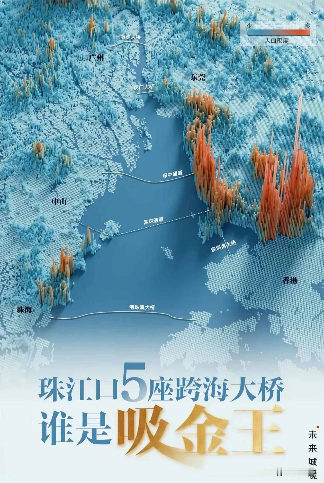 珠江口有五座跨海大桥,车流量最大的是南沙大桥,日均高达12.65万辆车通过,过桥费是42元,所以南沙大桥的收入不是最高的。 珠三角真正的“吸金兽”是2024年开通的深中大桥,虽然日均车次9.24万低于南沙大桥,但是过桥费66元,拉高了深中大桥收入。 相比之下,港珠澳大桥投资最高,过桥费也高达150元每次,但车流量和收入都不是最高的。未来深圳到珠海的深珠大桥开通,应该也能超过港珠澳大桥。南沙明珠湾隧道 珠江口跨海通道 南沙货车 南沙滨海长堤