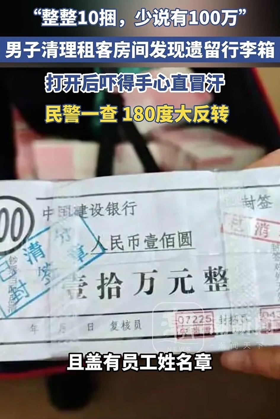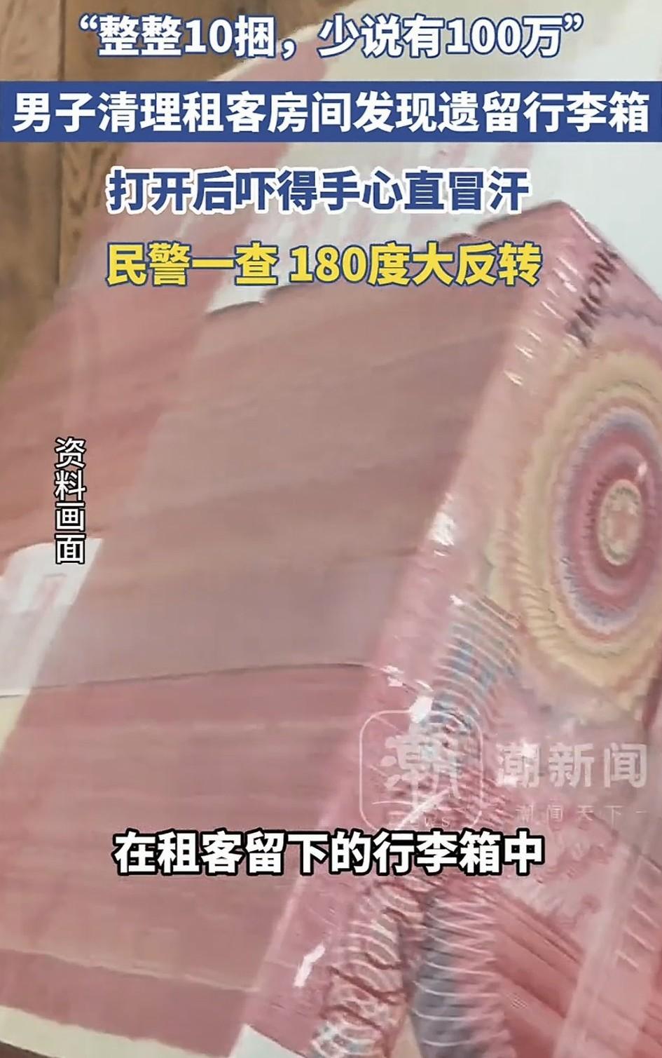 虚惊一场。杭州,一男子在清理租客使用完的房间时,发现租客留下的一个开着行李箱,结果走近行李箱一看,瞬间吓得冷汗直冒,因为这行李箱里放着一坨贴有银行封签的整齐现金,细看下来,整整十捆,至少也有100万!为此男子啥也没想,赶紧掏出手机报了警。而民警接到如此“大案”,也是火速抵达现场,结果一番详细调查后发现,这不是真钱,而是一些道具币。 后民警联系到前租客才了解到,这名租客是个短视频博主,这批百万“现金”,只是他拍视频使用的假道具而已,在网上到处都可以买得到。而案件告破,原来是虚惊一场后,男子这才长长的松了一口气。 对此民警也借此告诫大家,虽然是道具假币,但因为仿真度实在太高,很有可能引起误会,倘若有人拿着这些假币冒充真币使用,更是属于违法行为,所以千万不可随意丢弃这些道具币,一旦这些道具币涉及了违法行为,主人也可能要承担法律责任。 不得不说,这正常人捡到这么多“钱”,肯定都会心里发慌吧,庆幸是虚惊一场,不然真会让人胆战心惊。但话说回来,男子发现这些道具币后,立即报警的做法非常正确,因为只有报警,才是解决类似问题的最佳途径。