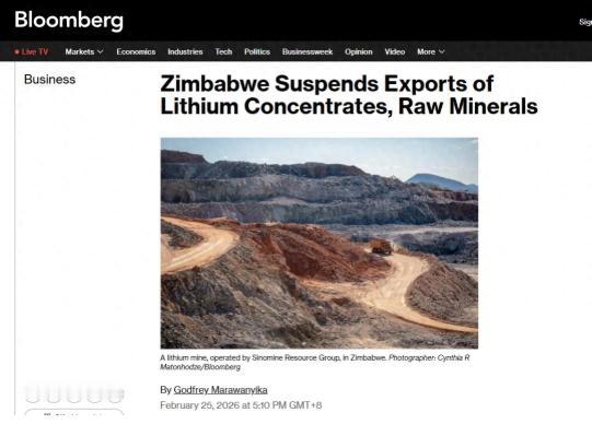 彭博社2月25日报道:津巴布韦宣布即刻禁止锂精矿出口,大批中资矿企被集体“一锅端”? 彭博社2月25日一报道,直接炸懵了国内圈里人——津巴布韦突然宣布即刻禁止锂精矿出口,大批在当地布局的中资矿企直接被集体“一锅端”,连个缓冲的余地都没给! 说句实在的,这波操作比伊朗当初放小弟鸽子还离谱,典型的忘恩负义,拿着中资的钱翻身,转头就给咱们背后捅刀子,简直没良心到骨子里! 大家可能不知道,这几年津巴布韦能在锂矿领域冒头,完全是靠咱们中资企业拉一把! 要知道,以前津巴布韦就是个穷得叮当响的国家,锂矿资源再好,没人投资、没技术开发,也只能埋在地下当石头。 是咱们中国的盛新锂能、华友钴业、中矿资源这些企业,看中了它的资源潜力,真金白银砸进去几十亿美元,帮它建矿场、搞开采、打通供应链,一步步把它打造成中国精炼厂的主要锂精矿供应地。 可以说,没有中资的投入,津巴布韦的锂矿根本掀不起浪花,更别说靠锂矿赚外汇、搞发展了! 本来咱们双方都有约定,这个锂精矿出口禁令是计划到2027年才实施的,中资企业也都是按照这个时间线布局的——前期投钱建开采设施,后期规划提炼环节,一步步来,稳扎稳打。 结果津巴布韦倒好,说提前就提前,直接提前一年实施禁令,连个招呼都不打,直接打了咱们中资企业一个措手不及! 这就好比你跟人合伙做生意,你把钱投进去了,东西也弄好了,对方突然说“我不跟你玩了,东西归我”,这不就是明抢吗? 现在咱们这些中资企业,简直是骑虎难下,陷入了两难的境地,怎么选都吃亏! 第一种选择,就是继续追加巨额投资,在津巴布韦当地建立一整套提炼工厂,把锂精矿在当地加工成锂盐再出口,这样就能避开出口禁令。 听起来是个办法,但这里面的风险大到离谱,谁都能看出来津巴布韦打的什么算盘!它就是想让咱们中资企业帮它建好提炼工厂,帮它把技术、设备、产业链都完善好,等咱们把一切都弄妥当,它大概率就会跟美西方公司勾结,用各种非法手段把咱们中资企业赶走,直接摘了咱们的桃子! 毕竟美西方一直盯着锂矿这块肥肉,津巴布韦现在翅膀硬了,就想踹开咱们,抱美西方的大腿,这种忘恩负义的事,它干得出来! 那第二种选择,就是放弃前期的几十亿美元投资,直接撤资走人。可这谈何容易?几十亿美元不是小数目,是企业真金白银砸进去的,还有建起来的矿场、购置的设备、招聘的员工,一旦放弃,前期的所有投入都打了水漂,企业损失惨重,谁也不愿意走到这一步。 而且咱们这些企业当初选择布局津巴布韦,就是看中了它的资源优势和长期合作的可能,现在说撤就撤,不仅是经济损失,后续的供应链布局也会被打乱,影响国内的精炼产业,可谓是牵一发而动全身。 其实还有第三种办法,也是最靠谱的办法,那就是国家出面施压津巴布韦,跟它好好谈判! 毕竟津巴布韦能有今天的锂矿产业,全靠中资的扶持,它现在的经济发展,也离不开中国的合作和援助。 咱们国家只要出面,明确跟津巴布韦表态,让它取消这种强制性的行政命令,要么延缓禁令实施,给中资企业足够的缓冲时间,要么就给咱们企业合理的补偿,不然咱们就全面撤资,不仅是锂矿领域,其他领域的合作也一并终止,甚至对它进行反制! 说句实在的,津巴布韦真的是鼠目寸光,拎不清局势!它以为靠美西方就能站稳脚跟,殊不知美西方只是想利用它的锂矿资源,根本不会像中资这样真心实意帮它搞发展。 一旦中资撤资,它的锂矿产业就会瞬间瘫痪,没有技术、没有资金、没有供应链,就算有美西方接手,也根本玩不转,最后吃亏的还是它自己! 就像当初伊朗以为自己替中俄背大刀,所有人都欠它的,结果小弟被打,自己也陷入困境,津巴布韦现在就是在走伊朗的老路,一门心思算小账,却忘了谁才是真正能帮它的人! 而且咱们中国也不是好欺负的,中资企业的合法权益必须得到保障!国家出面谈判,不是求着津巴布韦,而是给它一个台阶下。 如果津巴布韦不识抬举,非要一条路走到黑,那就别怪咱们不客气,撤资、反制,有的是办法让它付出代价! 毕竟锂矿资源不是只有津巴布韦有,咱们还能找其他国家合作,而津巴布韦失去中资,就等于失去了发展的底气,最后只能竹篮打水一场空! 现在最关键的就是,咱们的企业不能慌,不能被津巴布韦的无理操作打乱节奏,一边稳住现有布局,一边等待国家出面协调。 而津巴布韦也该好好醒醒了,别被美西方的糖衣炮弹迷惑,别干出卸磨杀驴的蠢事,不然最后只能搬起石头砸自己的脚,沦为国际上的笑柄!说到底,合作才能共赢,忘恩负义的人,终究走不远!