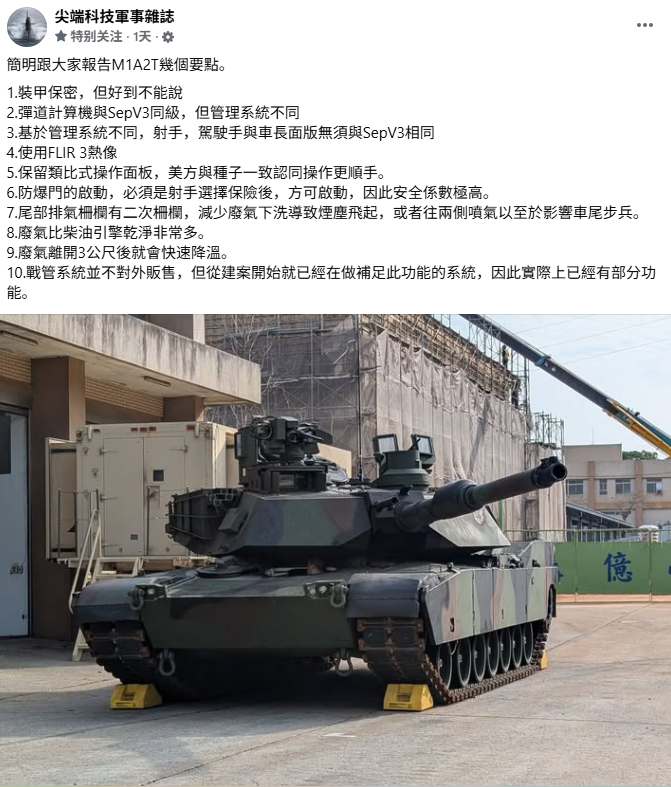 中国台湾媒体称:虽然台湾M1A2T炮塔装甲上虽然有个代表出口版的E,不过E上方还有一杠,代表不是普通的E,代表内容物特殊,还说主装甲可以抗穿有850毫米。