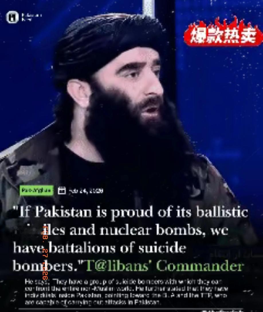 在巴基斯坦对阿富汗进行军事打击后,塔利班指挥官在阿富汗国家电视台对巴基斯坦发出恐怖主义式威胁: “如果巴基斯坦以核武器和导弹为傲,那我们也有成营的自杀式炸弹袭击客。” 这话一出来,明眼人都能看出来,格局一下就掉到底了。 别人拿国防力量说事,你拿极端方式回怼,这哪里像一个执政者该有的样子。 巴基斯坦之所以动手,根源还是边境安全长期失控,极端势力越境作乱,平民和军警频频受害。 不解决问题,反而放大威胁,只会让局势更乱。 一个真正想治理好国家的力量,本该全力稳定秩序、打击极端、保护百姓。 把自杀式袭击当成“底气”,只会让国际社会更加不信任。 靠威胁吓不倒邻国,靠极端更换不来尊重。 越是喊这种狠话,越显得没有更好的解决办法。 巴阿两国本是邻居,长期互相消耗,吃亏的永远是普通老百姓。 不对话、不管控、只放狠话,解决不了任何实际矛盾。 说到底,这番言论除了激化对立,没有任何意义。 放下极端思维,回到务实解决问题的路上,才是对两国人民真正负责。