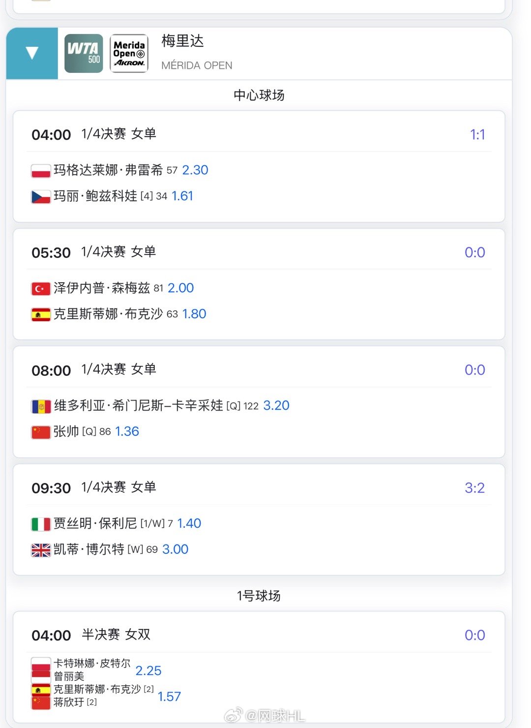 🇨🇳张帅6-4 6-4淘汰纳瓦罗三连胜对手的同时,晋级梅里达500八强收获1
