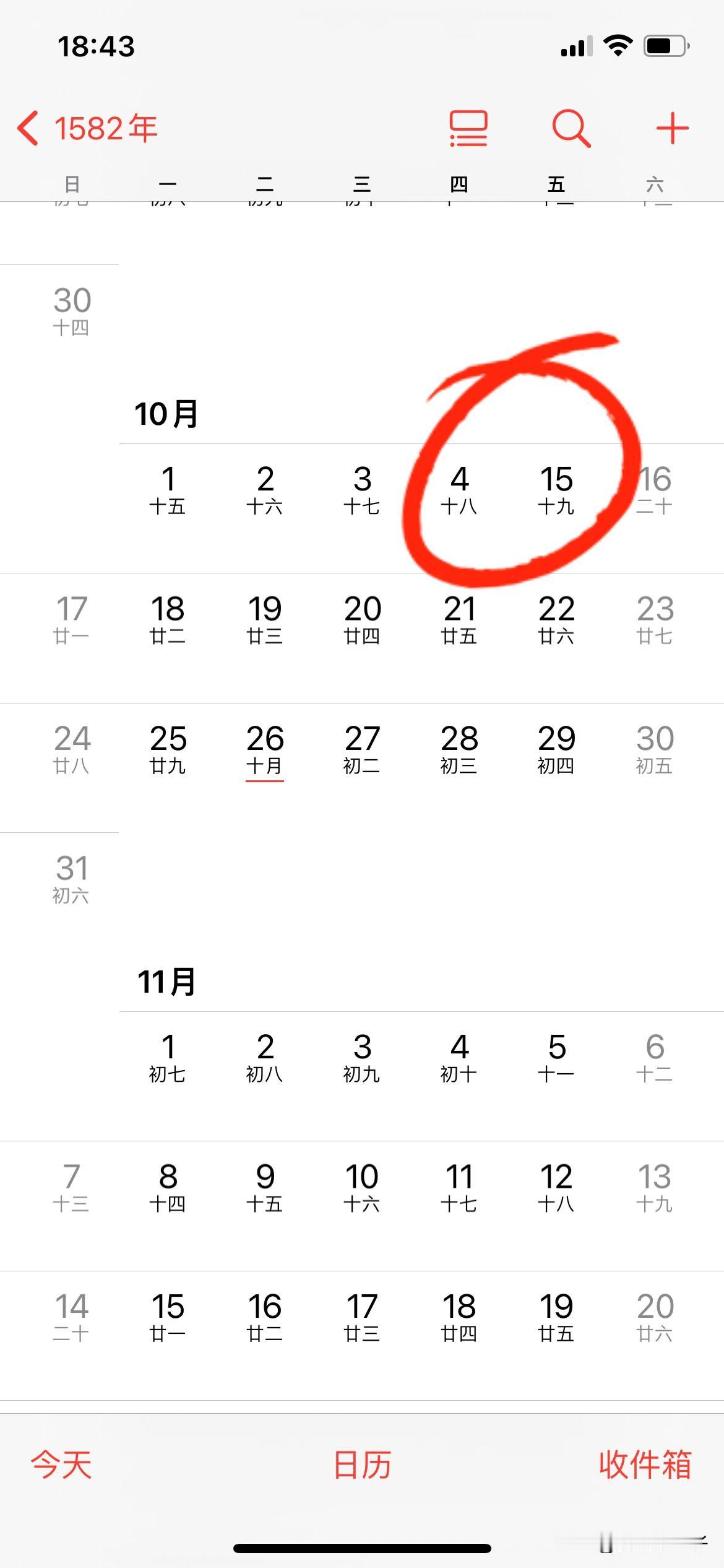 历史上凭空消失的十天 原本不信 结果打开手机日历发现是真的[捂脸] 1582年十月的十天去哪儿了???