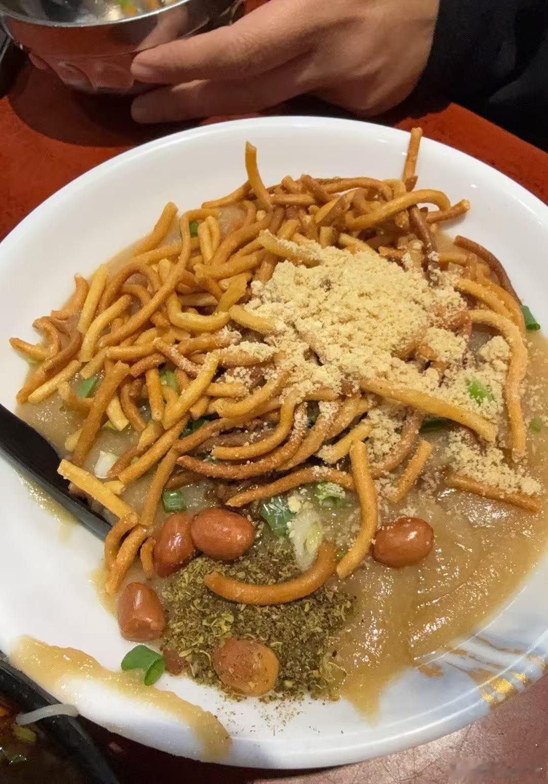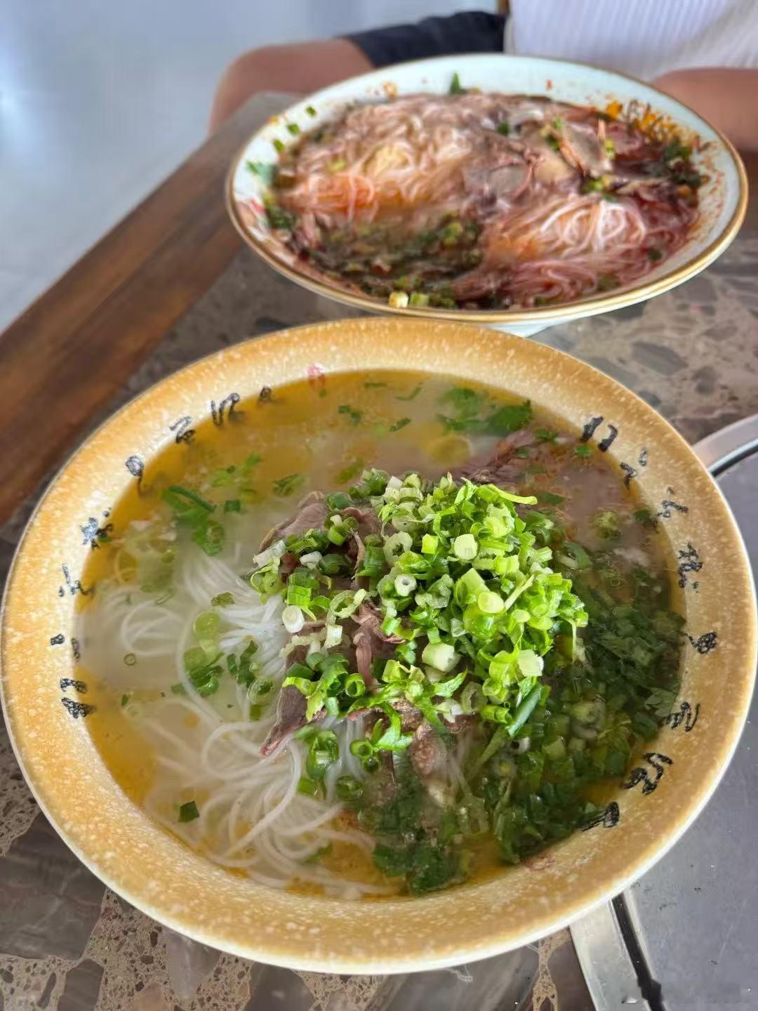 黄羊子羊肉粉:位置挺偏的,但是吃粉的人真不少,羊肉米粉有清汤和红汤两种,很大一碗,可以加各种肉料,粉不够可以再加,汤很鲜,味道浓郁,羊肉羊肚炖的软嫩不柴,加了醋和辣椒油很好吃。
