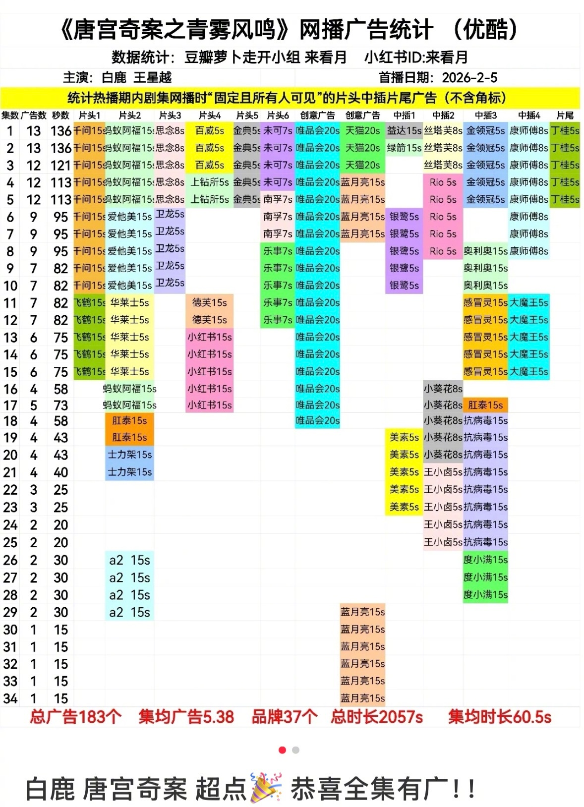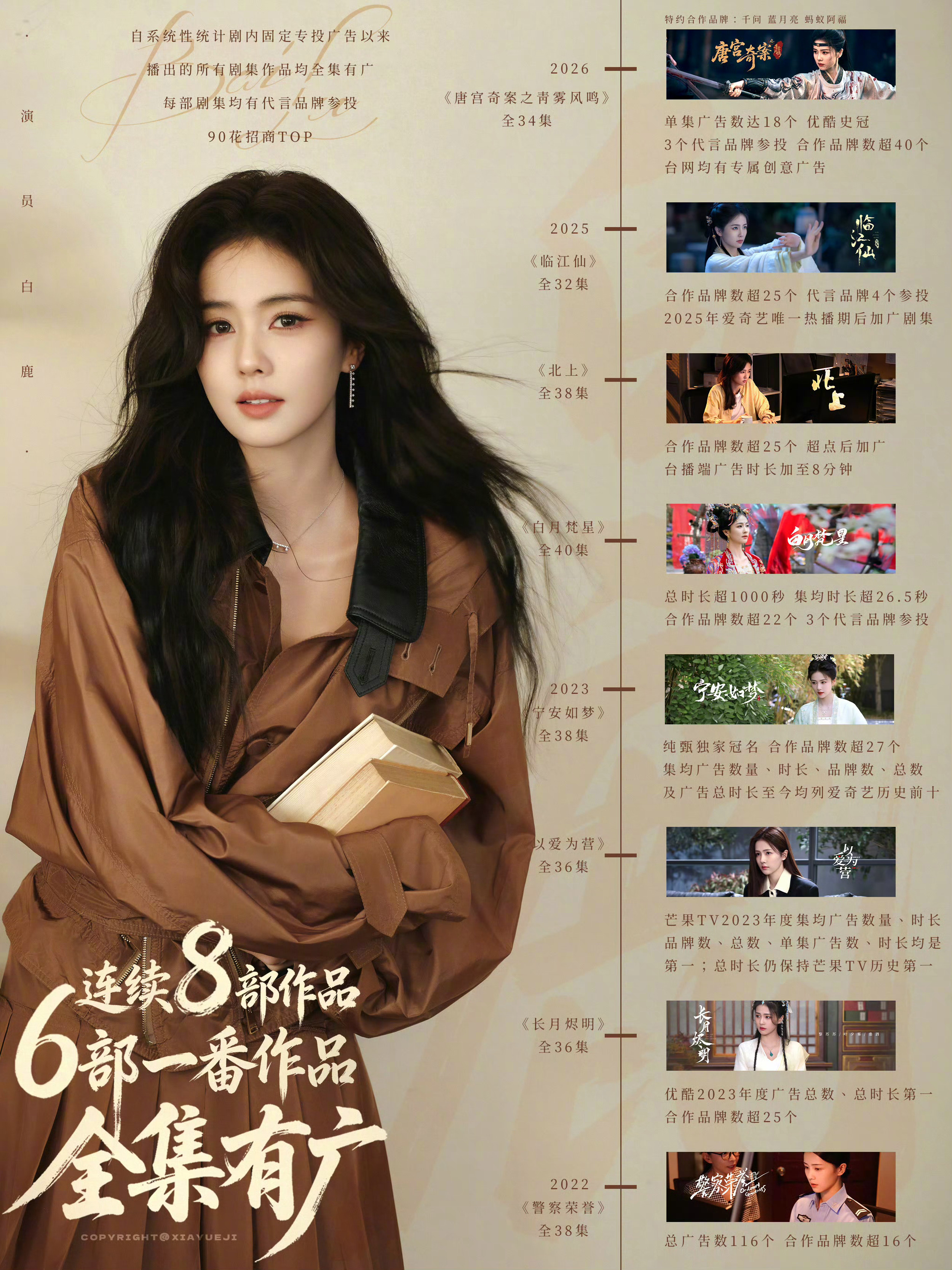 《唐宫奇案》全集有广!恭喜这个扛剧扛招商的演员白鹿达成第八部剧集全集有广成就!数据不会骗人的吧,《唐宫奇案》再次证明了白鹿的号召力,说实话有此女在的剧就是热度流量不用愁啊,稳稳的很安心