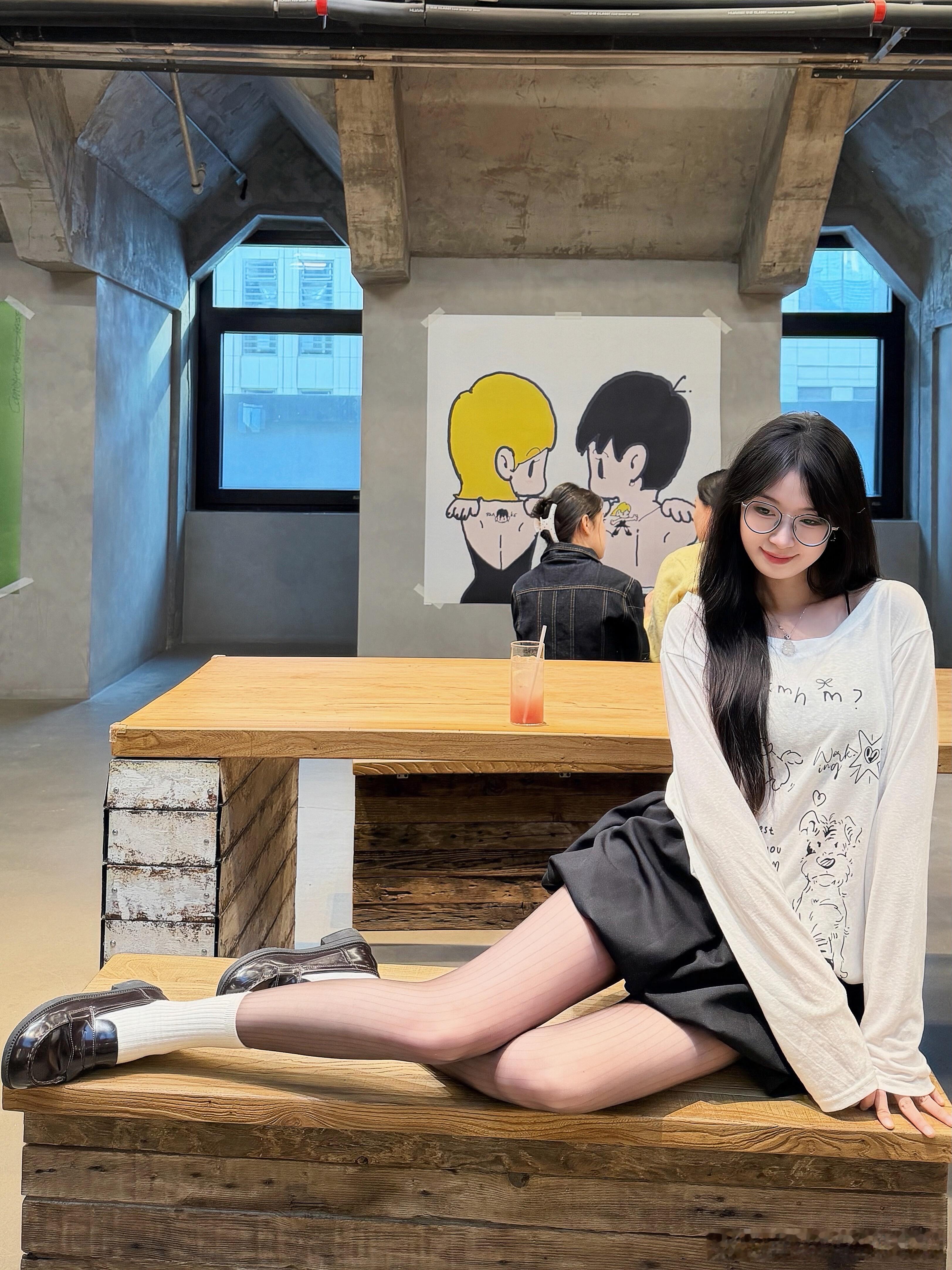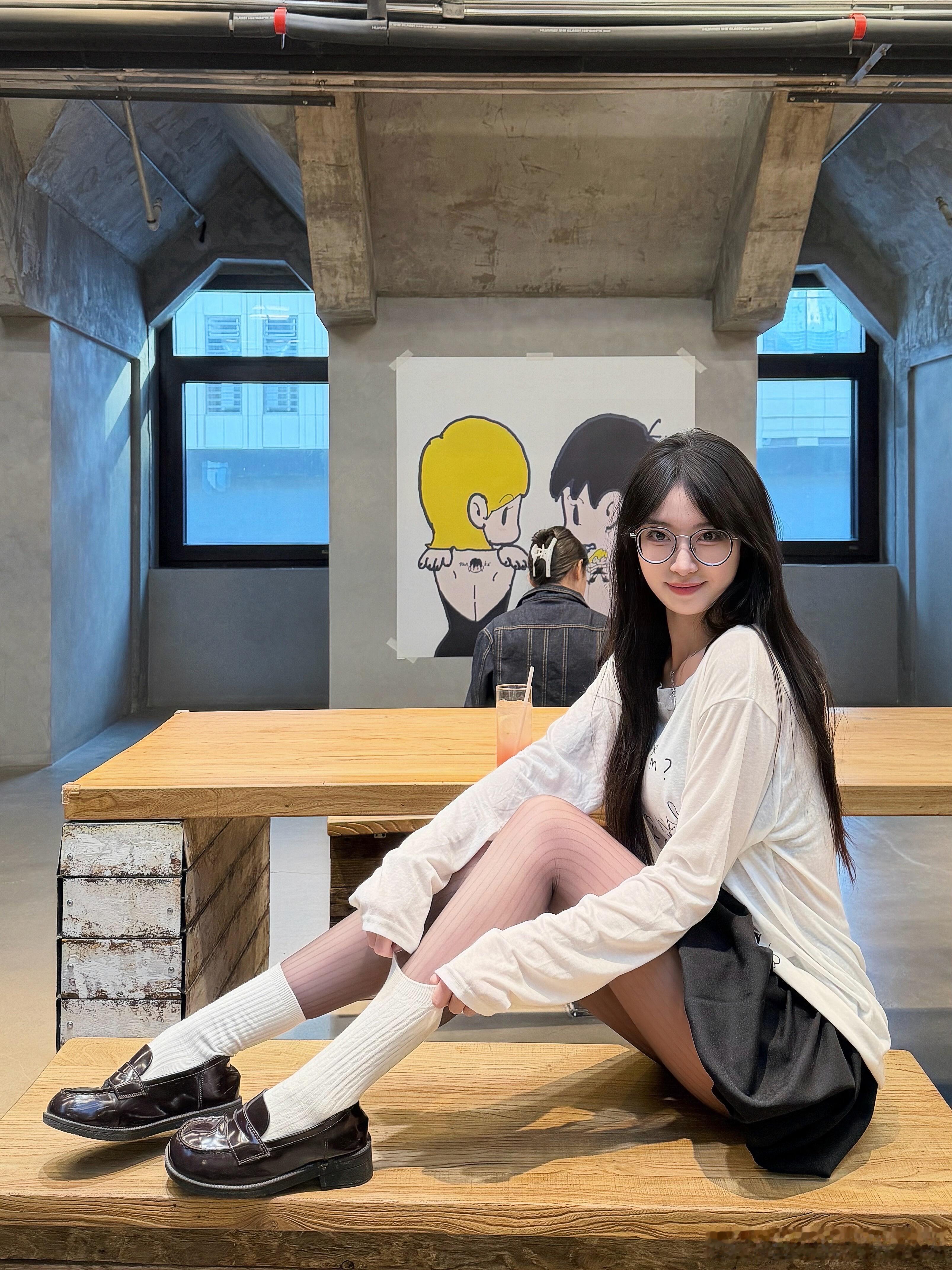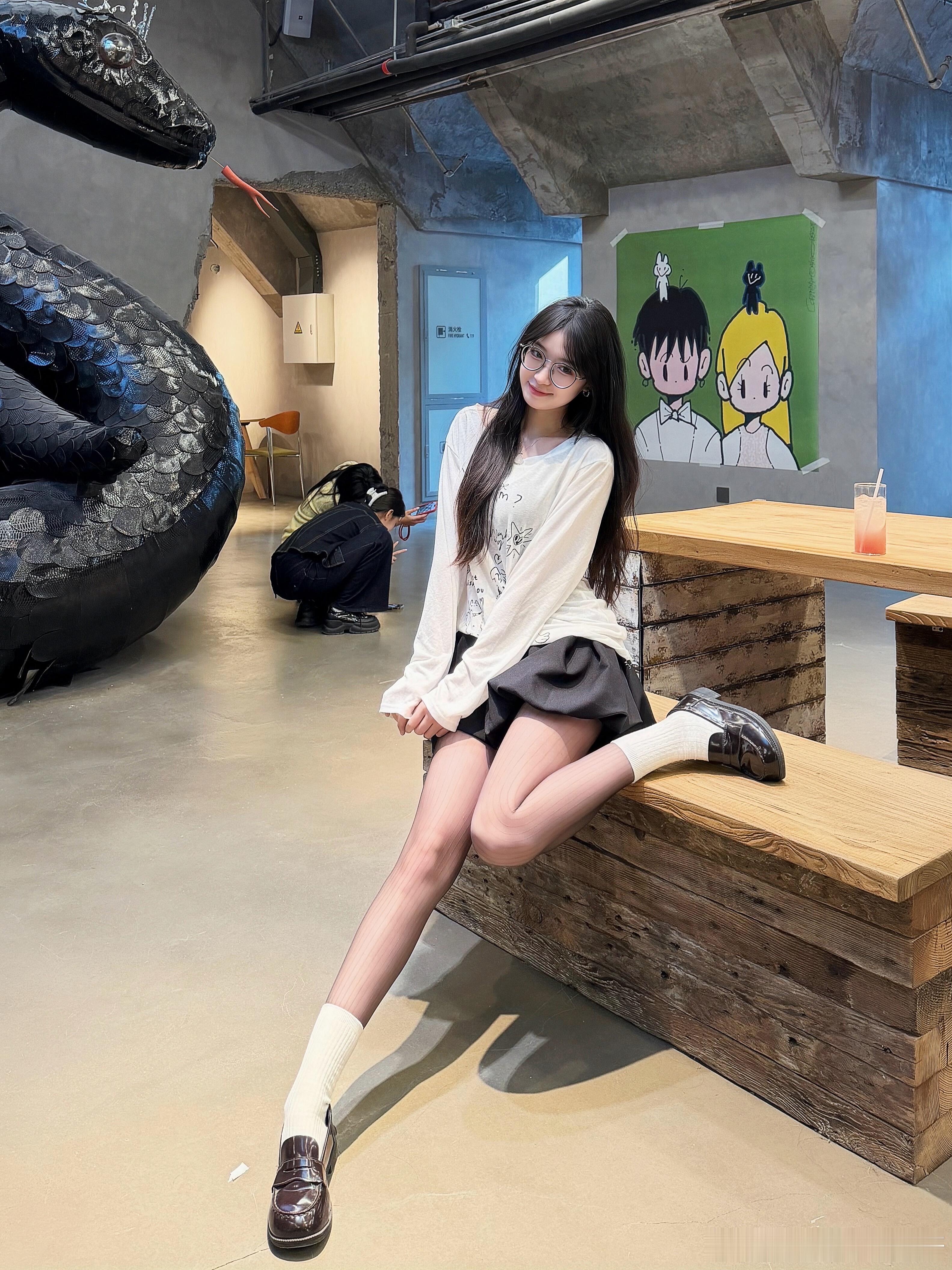 高铁上的“奶白松弛甜妹”,白色短袖+灰裙+白丝+白鞋,把元气和舒服焊在身上。穿搭