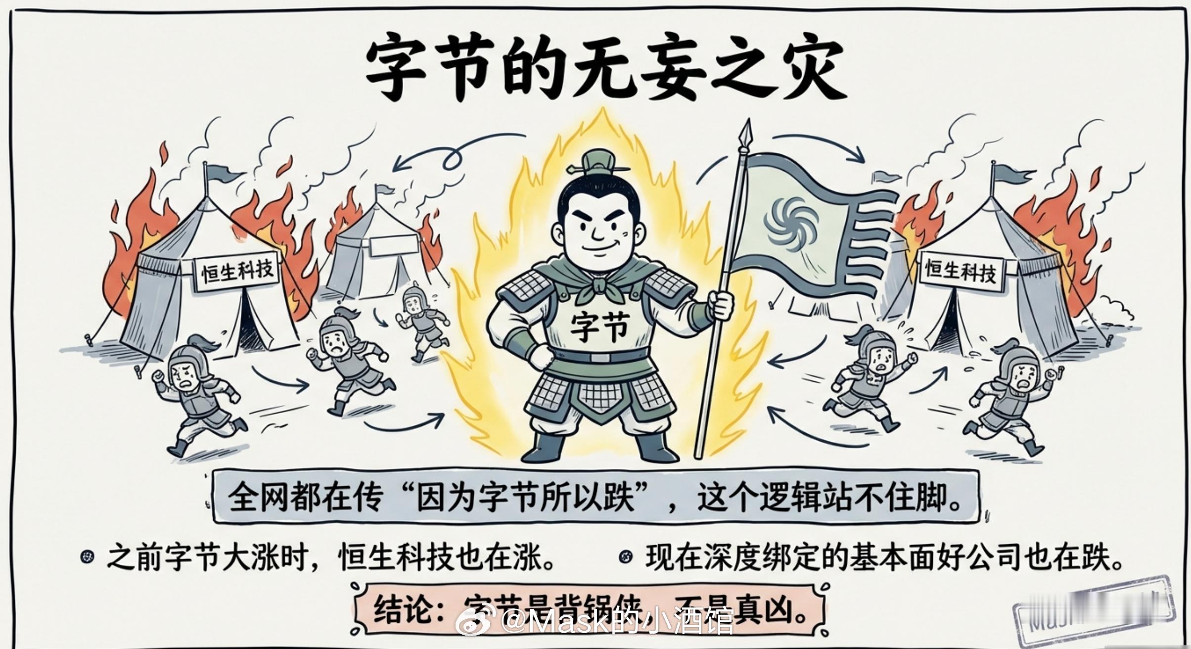 最近这波恒生科技的跌幅,有人拿来跟白酒类比,说是"白酒第二"。被套的朋友心里苦,但更苦的是——不知道这到底是趋势坏了,还是只是被砸错了。我今天就把这件事从头到尾说清楚,你自己判断。字节的无妄之灾最近全网流传一个说法:恒生科技这波下跌,是因为字节。