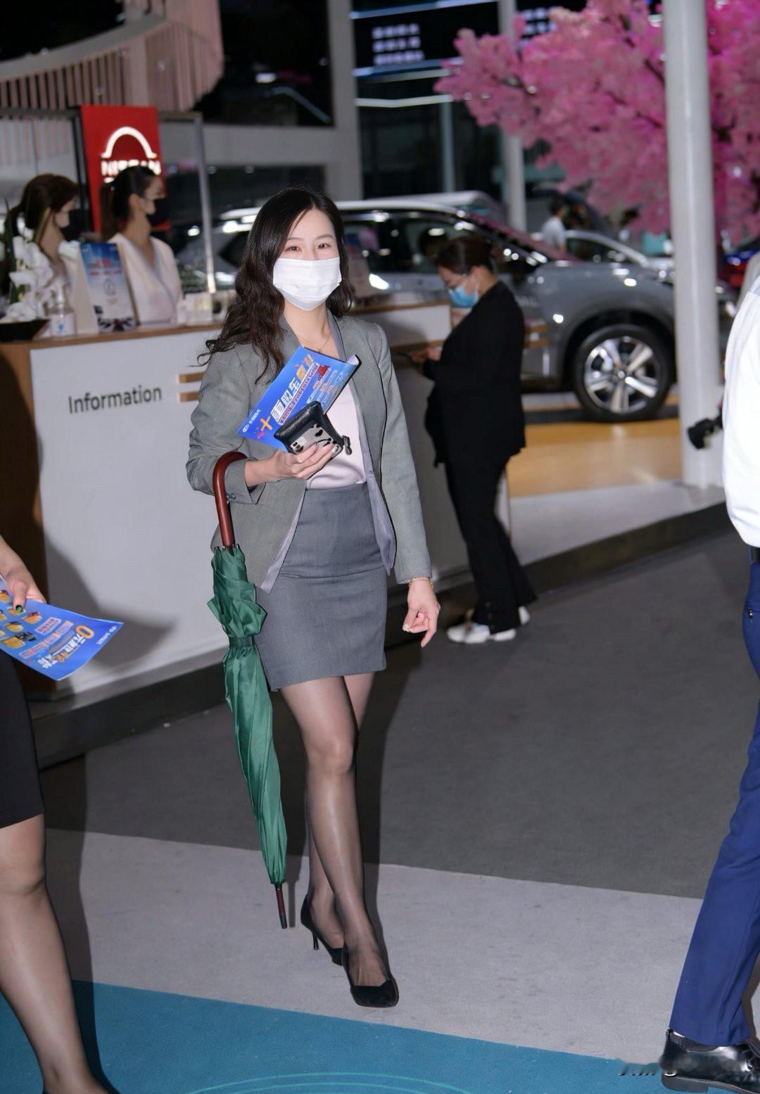 职场美女手拿资料,自信满满,雨伞相伴,尽显优雅风范!