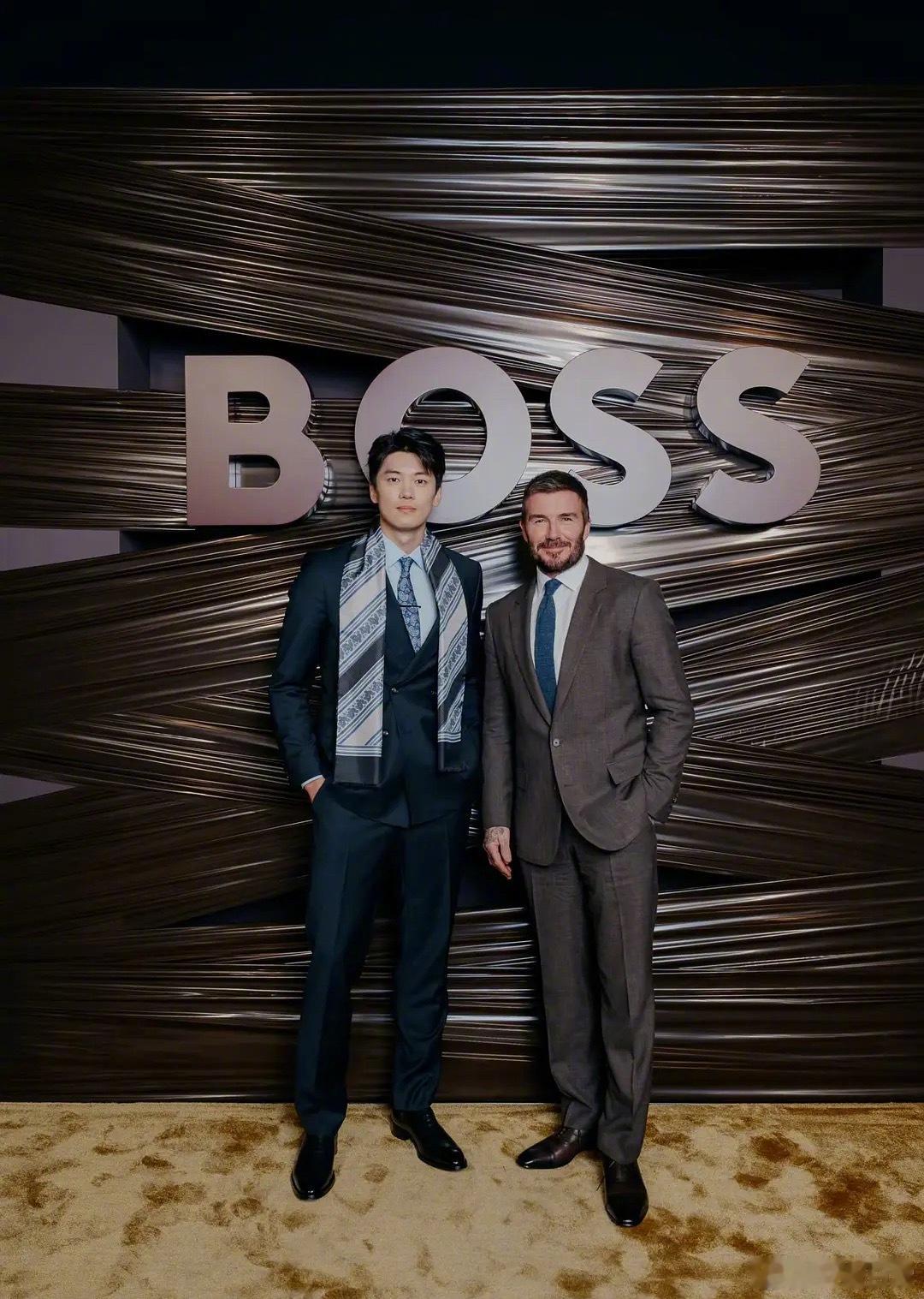 刘学义、贝克汉姆、汪顺、崔胜澈BOSS米兰时装周合照