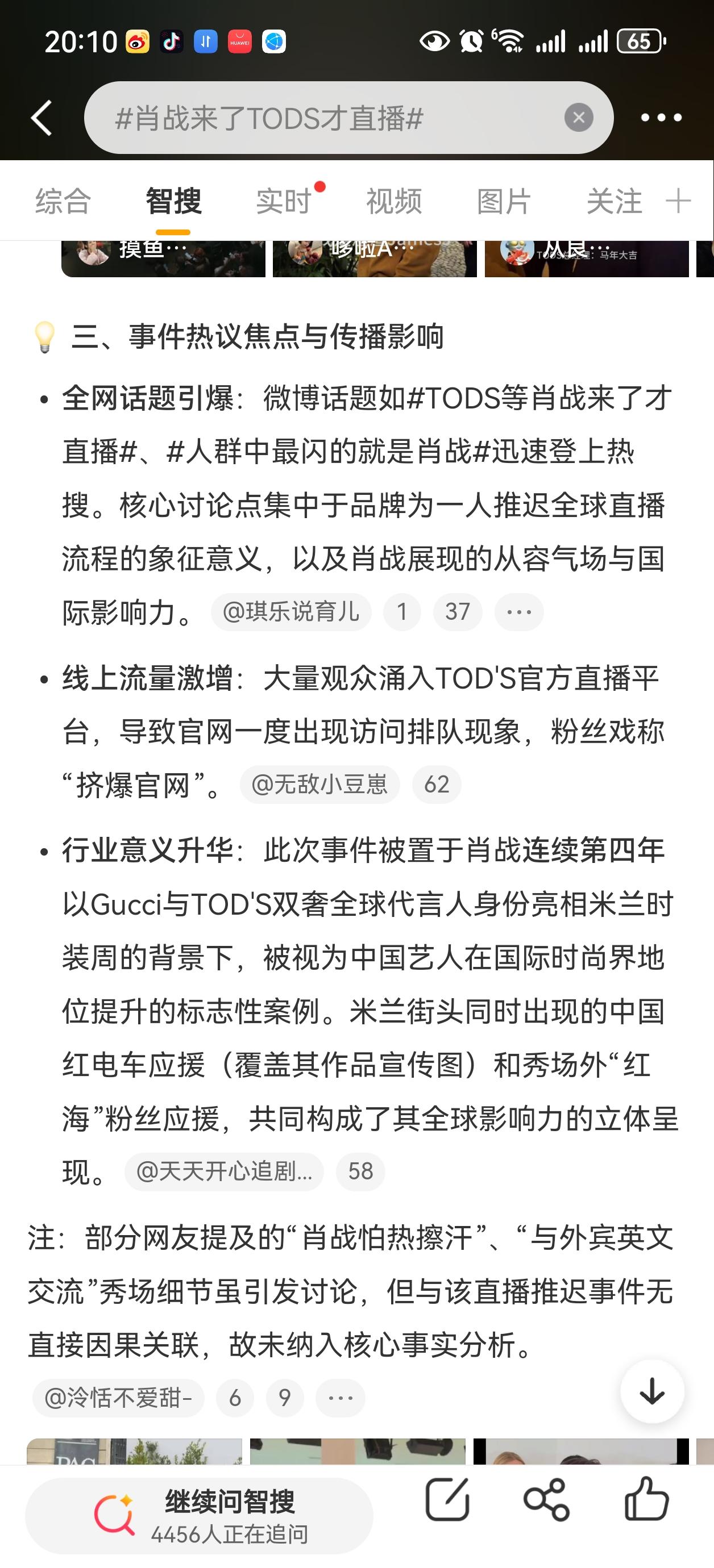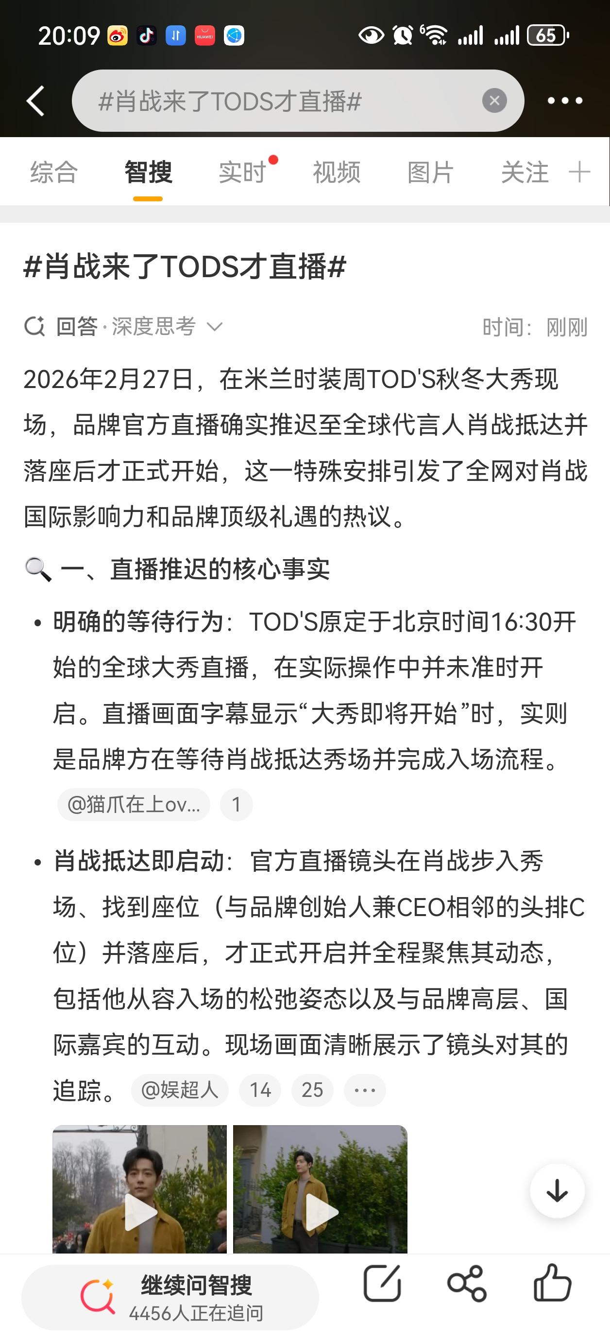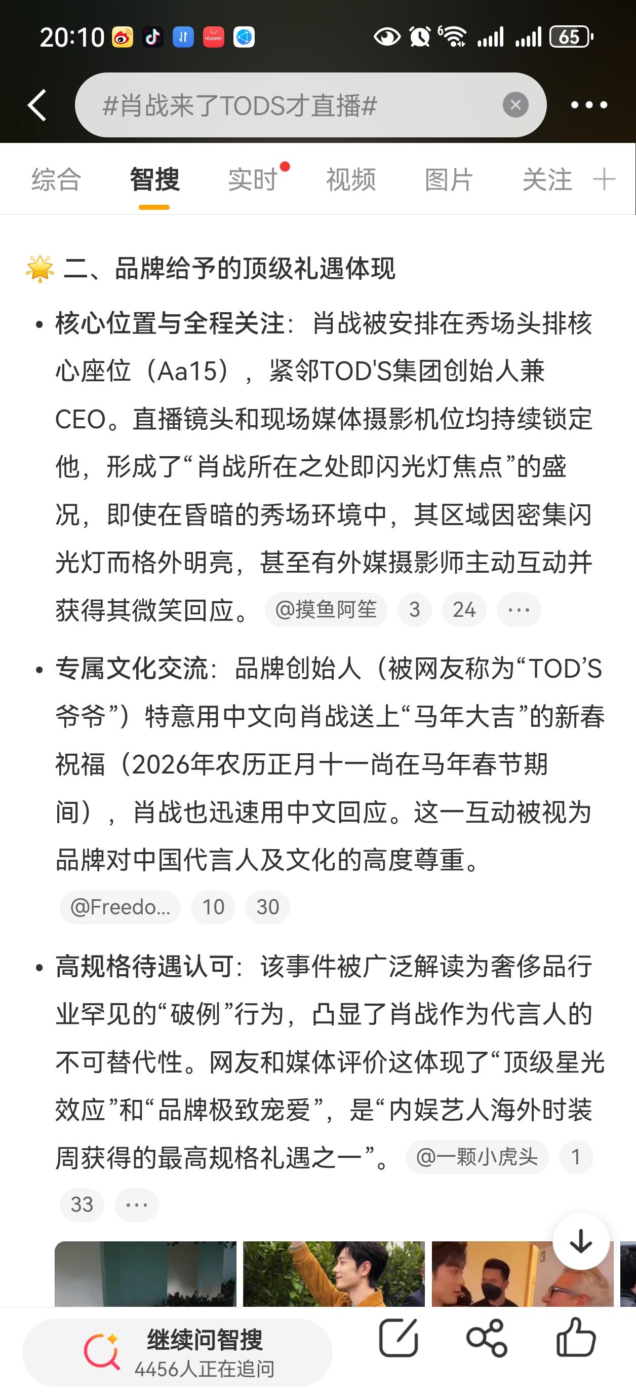 肖战在高奢秀场从来都是最顶级的待遇,tods等肖战到场了才开始直播,品牌创始人(意大利人)用中文跟肖战问好,并招待肖战,座位也一直都是在创始人旁边,另一边是意大利舞蹈家,海内外平台第一时间发肖战相关内容[赞][赞][赞]