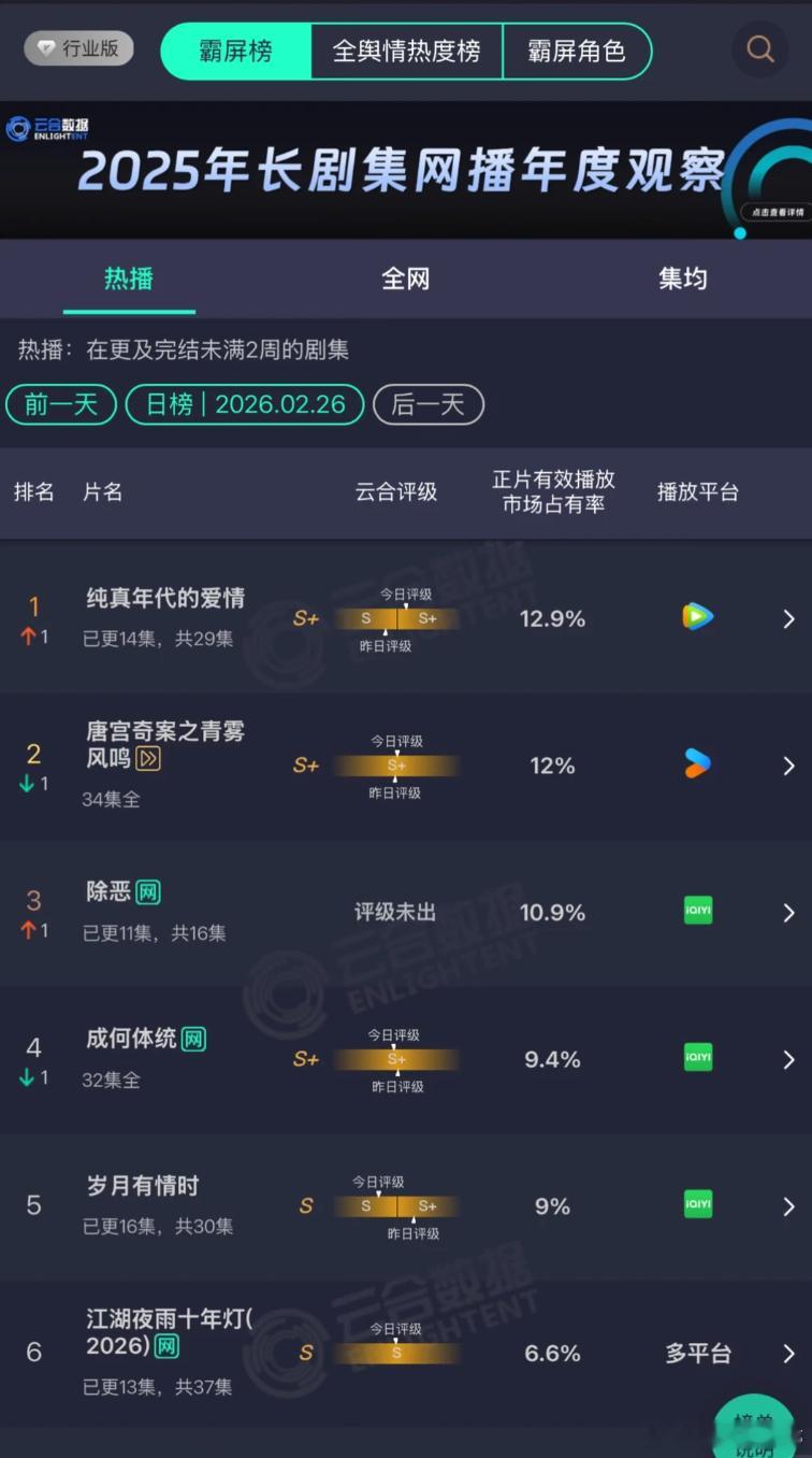 陈飞宇偏偏你最争气只想大声说,陈飞宇偏偏你最争气!出道至今始终以作品立身,《纯真年代的爱情》云合S+认证,收视口碑双丰收,各项数据稳居前列。方穆扬的纯情细腻被他演到极致,过往角色也个个经典,踏实努力、实绩说话,在演员这条路上越走越稳,真的足够争气亮眼!