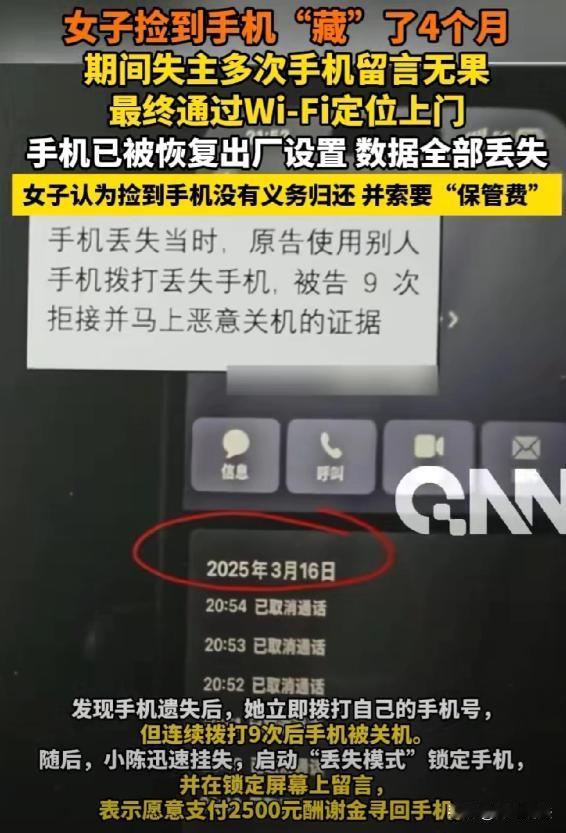 广西,一男子小陈在体育馆散步时,把价值6000多元、存有重要资料的华为手机弄丢了。他连打9次电话没人接,最后手机被关机。小陈赶紧挂失、锁定手机,还留言愿付2500元酬劳。可4个月里,手机多次开机却没人联系他。7月18日,手机再次开机,小陈靠定位和WIFI找到小区,最终锁定11楼住户李某家。李某竟索要保管费,手机还被恢复出厂设置,资料全丢。小陈无奈起诉,最终双方达成调解,李某赔了3800元。 小陈的那手机,刚买没多久,6000多块。 关键是里面的资料,据他说都是工作上的重要文件,还有家里的一些重要备份,丢了根本没法补。 2025年3月16日晚,小陈去体育馆溜达消食,走着走着随手把手机放口袋里,没注意口袋破了个小口。 等他反应过来手机没了,赶紧找旁边路人借了手机,一遍又一遍打自己的号码。 一次,两次,三次……足足打了9次,听筒里只有嘟嘟的忙音,没人接。 就在他打第十次的时候,手机直接关机了。 那一刻,小陈太清楚了,这不是不小心漏接,是捡手机的人故意不接,还关了机。 没敢耽误,他立马挂失了自己的手机号,通过手机自带的功能锁定了设备,还在锁定界面留了言,说只要能归还手机,愿意给2500元酬劳,多少弥补对方的麻烦。 他以为,重赏之下必有回响。 毕竟2500块,差不多快赶上手机一半的价格了,捡手机的人应该会动心。 可他没想到,这一等就是4个月。 这4个月里,小陈每天都要打开手机查找功能,盼着能看到手机开机的提示。 偶尔,手机会短暂开机,定位也会显示大概的范围,但就是没人联系他。 他顺着定位找过几次,都是模糊的小区范围,根本没法精准找到哪一户,只能无功而返。 直到7月18中午,手机又一次开机了。 这次小陈反应极快,立马盯着定位,还结合手机连接的WIFI信息,很快锁定了一个小区。 他赶到那个小区,从1楼问到10楼,每一户都问了,都说没捡过手机。 到了11楼,他敲开了李某家的门。 开门的是李某,神色有点慌张,问他找谁。 小陈直接说明来意,说自己的手机定位到这里了,希望李某能归还。 李某一开始不承认,说自己没捡过什么手机。 小陈没办法,直接报了警。 民警赶到后,李某才磨磨蹭蹭地从抽屉里拿出了小陈的华为手机。 可看到手机的那一刻,小陈更生气了。 手机屏幕亮起来,根本不是他锁定时的界面,明显被恢复出厂设置了。 他当场问李某,为什么要恢复出厂设置。 李某说自己捡来后不知道密码,没法用,就恢复了。 更过分的是,李某还理直气壮地说,自己保管了手机4个月,付出了时间和精力,让小陈再给一笔保管费,不然就不还手机。 小陈已经承诺给2500元酬劳了,李某不仅不满足,还删了他所有资料,现在又索要保管费。 资料没了,协商也谈不拢,小陈没别的办法,只能起诉了李某。 他手里有定位记录、手机锁定留言截图,还有民警出警的记录,证据很充分。 李某的行为,到底有没有违法呢? 依据《民法典》第314条规定,拾得遗失物,应当返还权利人。拾得人应当及时通知权利人领取,或者送交公安等有关部门。 李某捡到小陈的手机,没有及时联系小陈,也没有交给公安机关,反而自己留着,还关机躲避联系,这已经违反了这条法律。 他不是合法的保管人,反而有义务主动返还。 据《民法典》第317条第一款规定,权利人领取遗失物时,应当向拾得人或者有关部门支付保管遗失物等支出的必要费用。 注意,是必要费用,如保管手机产生的电费、交通费之类的,而且得有凭证。 李某索要的保管费,根本不是什么必要费用,纯属额外索要,而且他还侵占手机不返还。 按照《民法典》第317条第三款,拾得人侵占遗失物的,无权请求保管遗失物等支出的费用,也无权请求权利人按照承诺履行义务。 也就是说,李某连小陈承诺的2500元酬劳都没资格要。 依据《民法典》第316条规定,拾得人在遗失物送交有关部门前,应当妥善保管遗失物。因故意或者重大过失致使遗失物毁损、灭失的,应当承担民事责任。 李某明明知道手机是别人遗失的,还故意恢复出厂设置,删除里面的重要资料,这就是故意造成遗失物附属价值受损,必须承担赔偿责任。 小陈手机价值6000多,资料丢失也造成了额外损失,起诉李某完全有必胜的理由。 李某错就错在,把别人的遗失物当成自己的东西,还肆意损坏,以为捡来的东西就可以随意处置。 法院受理案件后,组织双方进行调解。 李某也清楚自己的行为,最终双方达成调解协议,李某一次性赔偿小陈3800元。 说实话,3800元可能弥补不了小陈资料丢失的损失,但至少给了他一个公道。 捡东西归还是基本道德,也是法律义务。 别想着捡了别人的东西就能占为己有,更不能索要额外钱财、损坏物品,不然不仅失德,还要承担法律责任。 要是你丢了存有重要资料的手机,遇到这种捡手机不还还删资料的人,你会选择起诉吗?