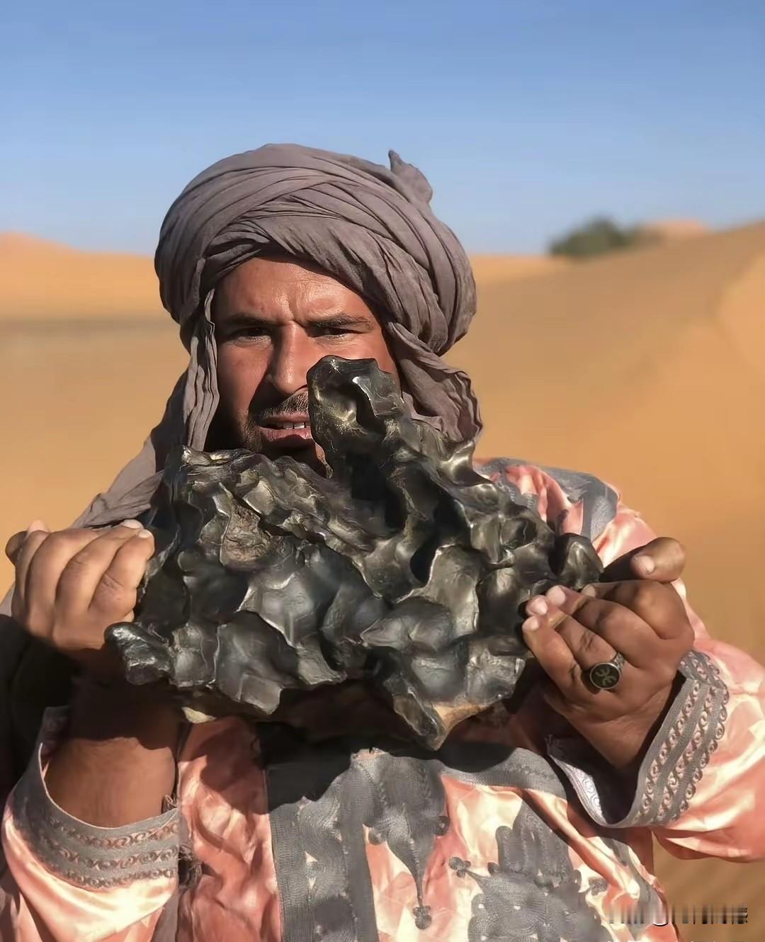 在沙漠中找到的铁陨石值钱吗?查看资料才知道,这东西值不值钱,跟品质和稀缺度有关系,值钱的相当值钱,比黄金可贵多了!普通铁陨石单价5至50元每克,稀有铁陨石(如极细粒八面体铁陨石)单价可达500至20000元每克,顶级收藏级铁陨石单价突破20000元每克,目测这个人手里拿的这块铁陨石,应该是一块普通的,但是根据这块石头的重量,也应该值一笔好钱!
