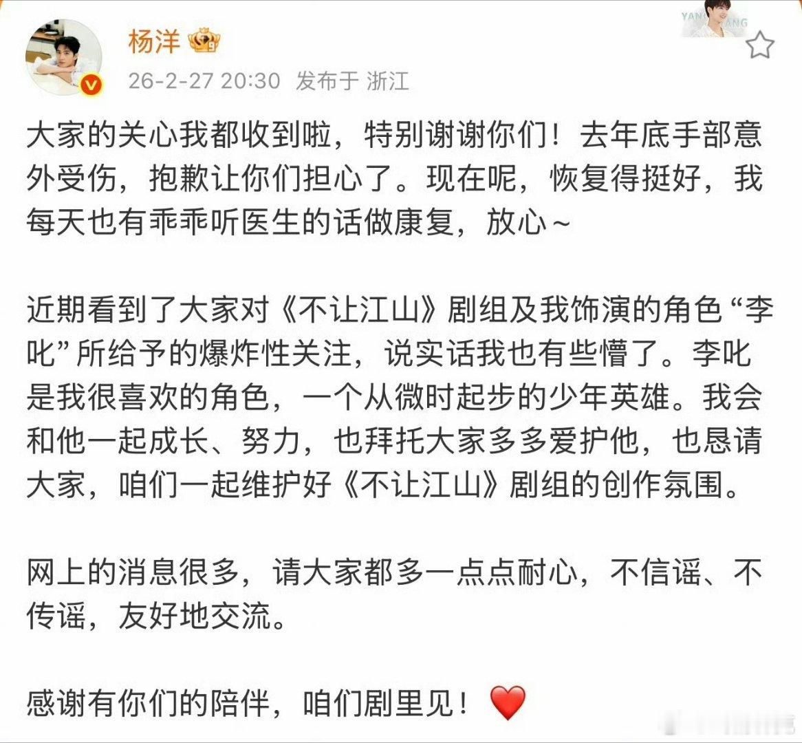 杨洋发文回应不让江山争议控制不住了