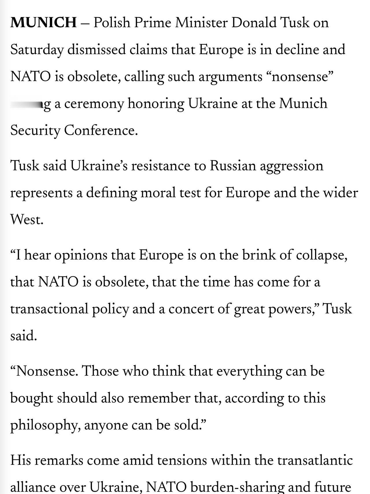波兰总理图斯克最近说了句话,想给欧洲提气。他说总听人讲欧洲快不行了,要崩溃了,但那不是真的,欧洲仍然是世界上最好的地方。 这话是2月25号他在华沙说的。当时他正跟冰岛总理见面,聊到冰岛打算公投要不要重启加入欧盟的谈判,图斯克表示支持,还说他乐见冰岛和挪威都进欧盟。 但这个时间点,说这话,细琢磨一下没那么简单。 当时正好是俄乌冲突打了整两年。整个欧洲这两年过得都不太顺,能源贵了,经济也疲软,安全上还得靠着美国。图斯克自己前两年可没少说丧气话。2024年他就警告过,说欧洲已经进入了“战前时代”,让大家做好心理准备。去年他还吐槽,说五亿欧洲人要靠三亿美国人来保护,去防着一亿四千万俄罗斯人,这话听着就挺憋屈的。 到了今年年初,他的调门又变了。开始批评美国对盟友的态度,说欧洲不管面对敌人还是盟友,都不能显得太软弱。这话里话外,其实是在回应美国那边一些让他不痛快的事,比如特朗普对格陵兰岛的主权嚷嚷,还有北约内部那些扯皮的事。 所以现在他突然说欧洲还是最好的地方,更像是在给自己人打气,想把人心拢一拢。他支持冰岛挪威入盟,也是在拉队伍,让欧洲看起来更团结一点,好对付俄罗斯那边的压力。 网上对图斯克这番话反应也不一样。 有人觉得他说得对,欧洲底子确实好。但也有人把这话扯远了,说什么欧洲地好得让“中国文明人来种”,这种说法听着就不太对劲,有种族主义的味道。 更多人是在琢磨他这话变来变去。前两年还在喊“战前时代”,现在又成了“最佳之地”,这弯拐得有点急。有人翻出他刚说过的话,说感恩乌克兰替欧洲挡着俄罗斯,这话听着挺暖,但也有网民觉得这是在把乌克兰当工具人,掩盖了背后其实是欧洲和俄罗斯的地缘博弈。 波兰人自己的行动倒是很实在。他们正在扩军,目标是三十万兵力,还在呼吁北约给核保护。这种实实在在的动作,比说什么话都更能反映中东欧国家心里那根绷紧的弦。 说到底,图斯克的矛盾,其实就是欧洲现在的矛盾。 一边想摆脱对美国的依赖,搞战略自主,可另一边又怕俄罗斯怕得不行,只能死抱着北约不撒手。一边喊欧洲是价值共同体,要团结,可另一边匈牙利那些国家根本不认“俄罗斯威胁”这套,他们更烦经济停滞和难民问题。一边觉得自己是文明高地,优越感满满,可现实里被能源危机、通货膨胀折腾得灰头土脸。 所以图斯克那句“欧洲还是最好的地方”,更像是在给自己和所有人鼓劲。但这话能信几分,或者说这口气能撑多久,怕是连他自己心里都没底。波兰政策大转向