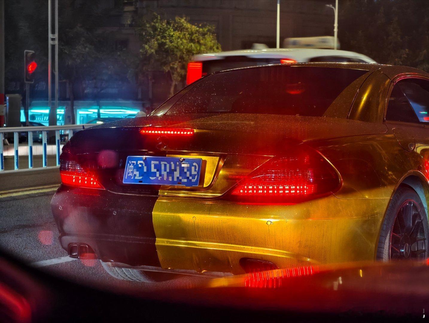 又遇到这台,一半贴金色一半黑色的奔驰SL