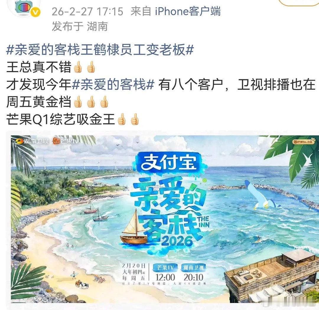王鹤棣新综艺【亲爱的客栈2026】的招商拉满了,芒果Q1综艺吸金王