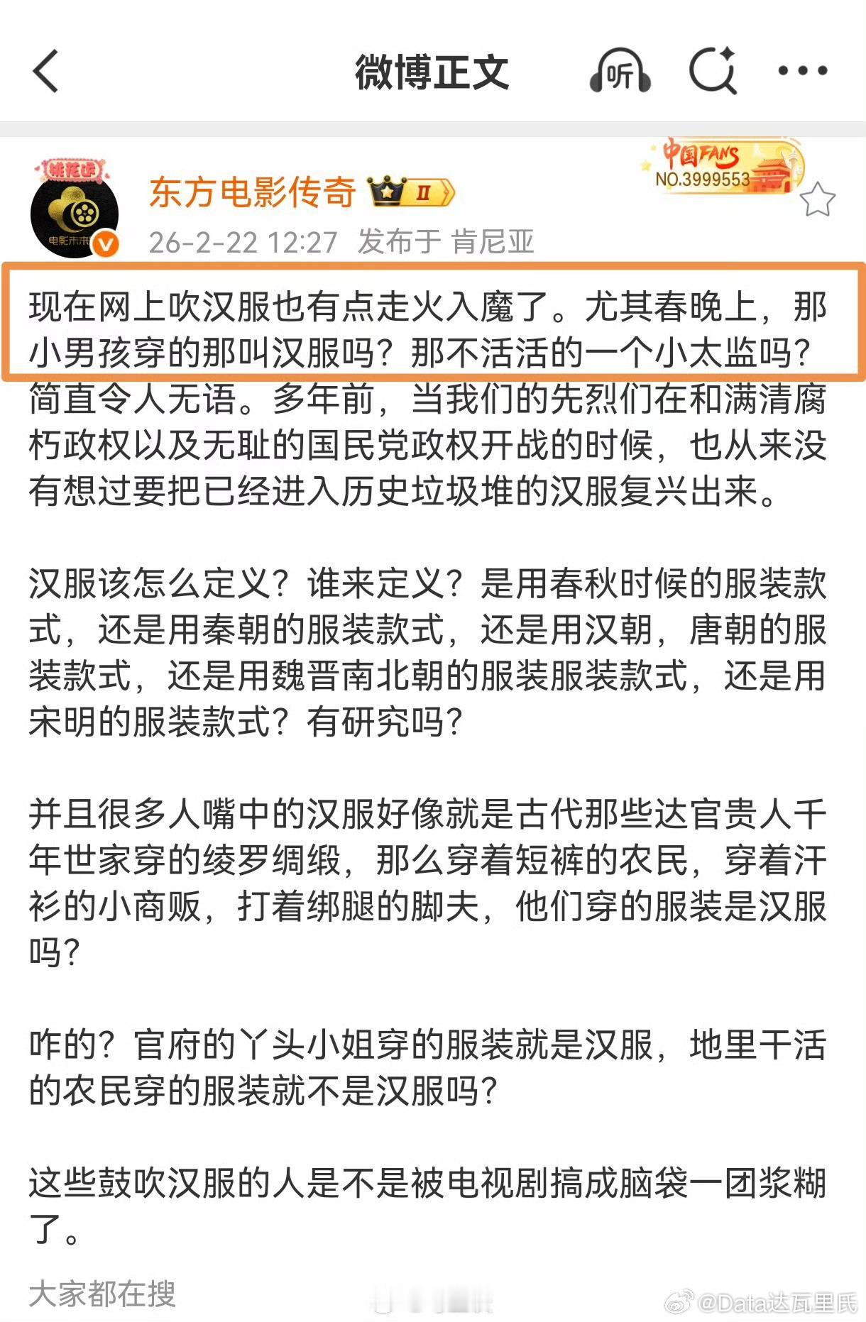 孔庆东辱骂汉服推广者