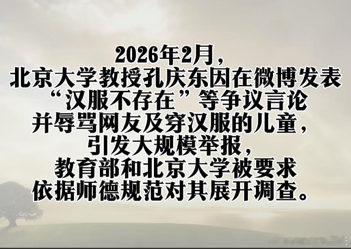 孔庆东辱骂汉服推广者北大教授孔庆东因说汉服不存在”且侮辱春晚穿汉服的小朋友遭举报。搜索了一下,孔叫兽帐号之前就因侮辱专家学者被禁言过。名校高校依然是公知叫兽恨国党的藏污纳垢集中地