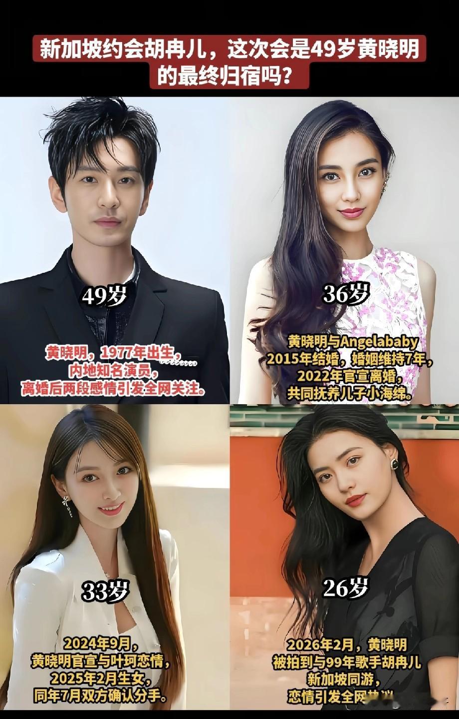 黄晓明的女人,第二个身材最好,第一个脸蛋最美,第三个不认识,可能有才华,年轻。黄晓明 嗯,看出来了,全是长头发,全是瘦的,全是女的,越来越年轻