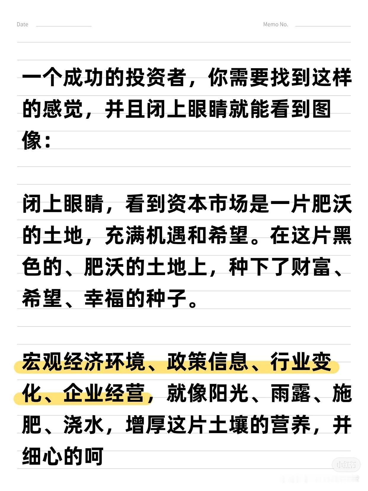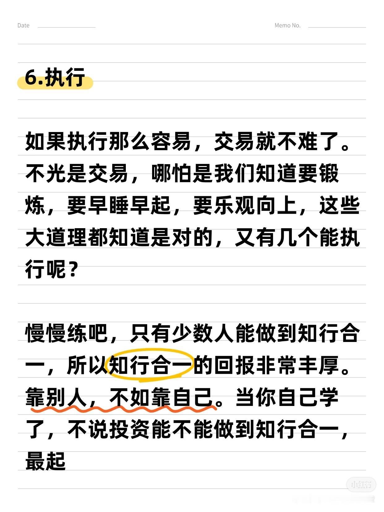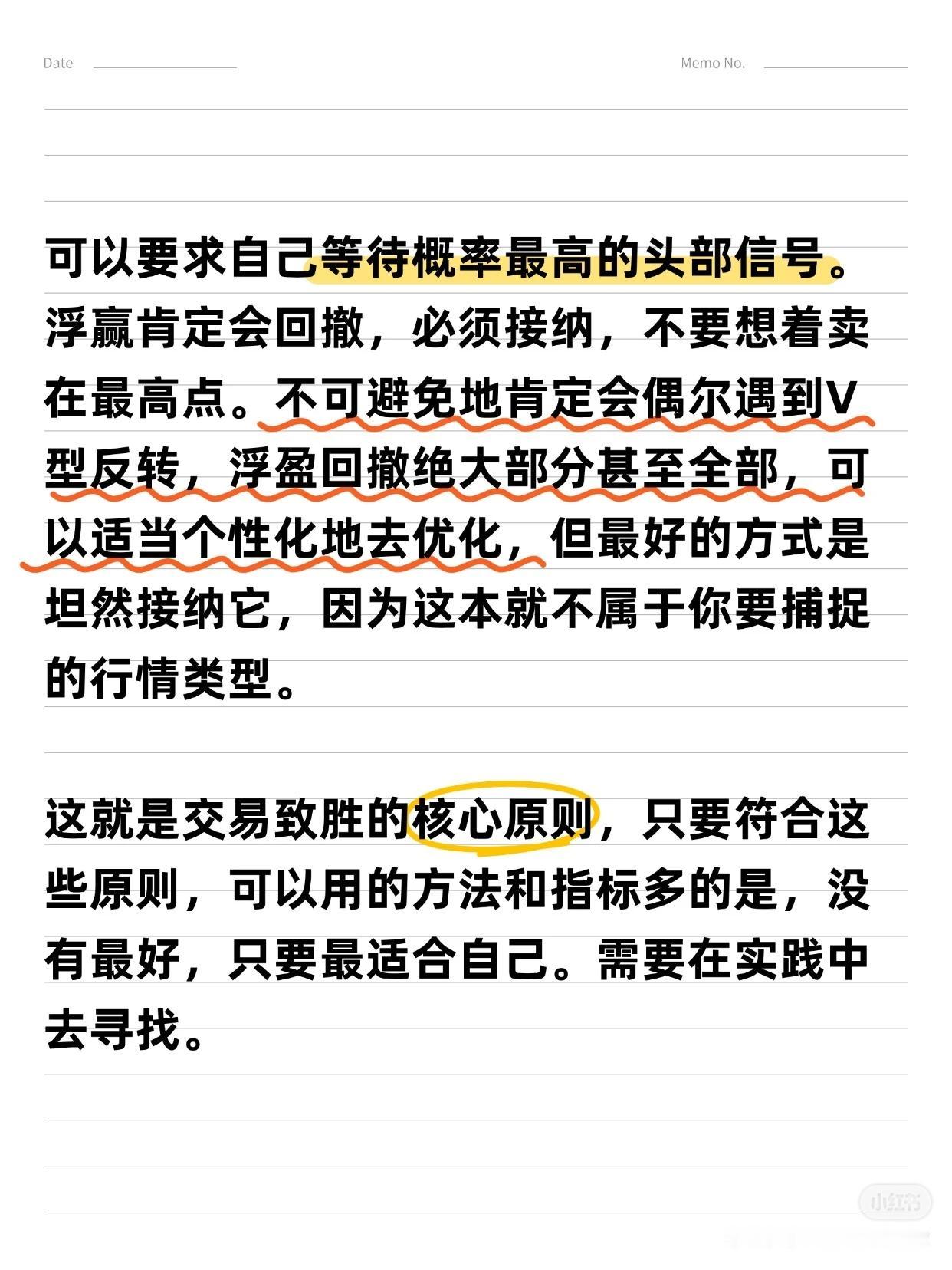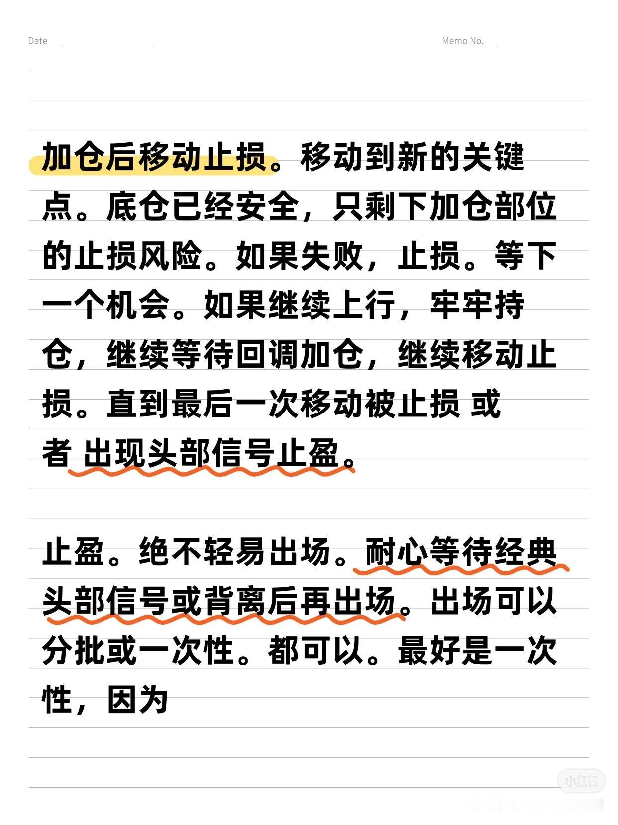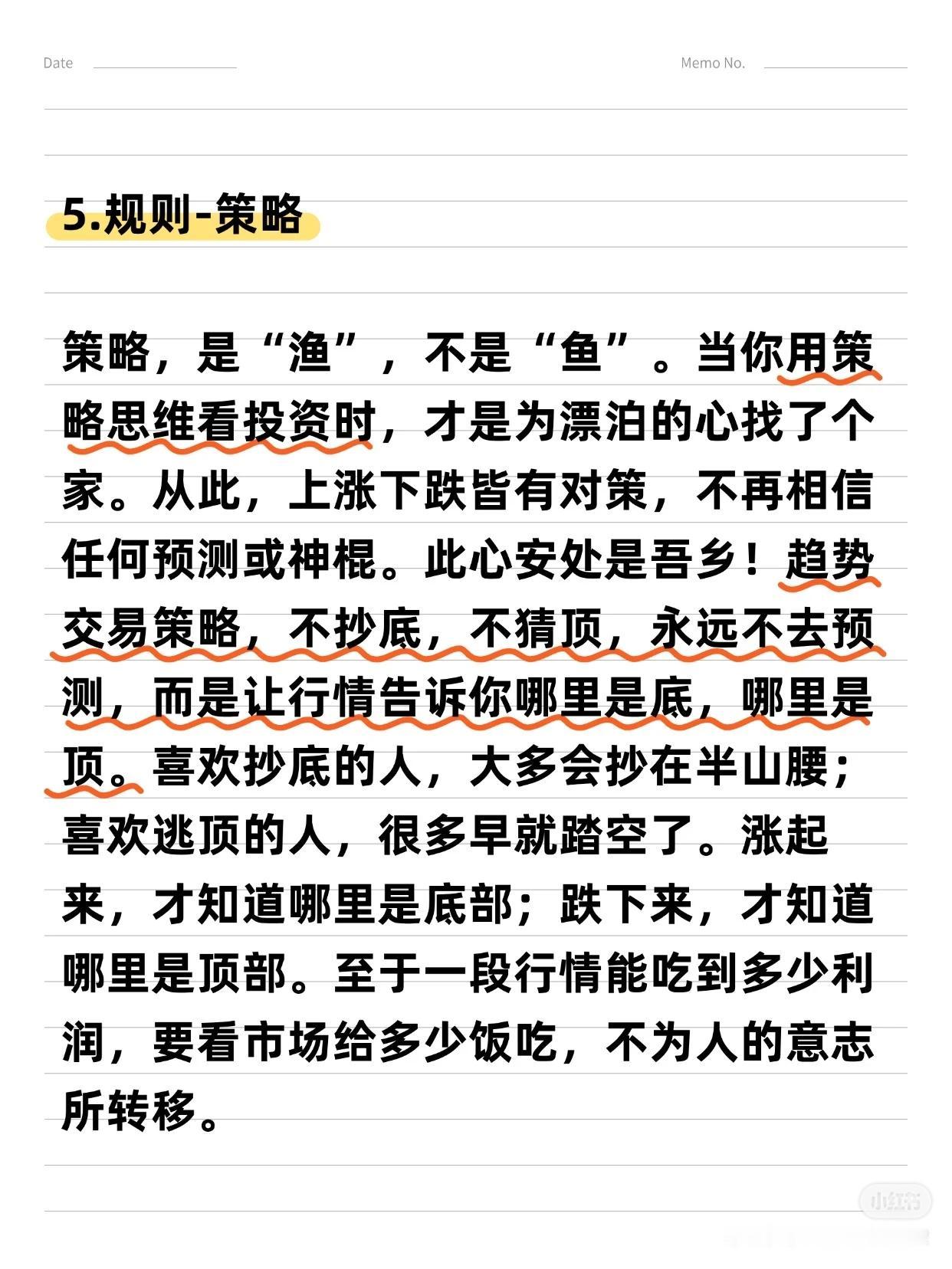 从亏损到“炒股养家”的6大关键词 作者拥有17年炒股经历,从亏损70%到实现稳定盈利,总结出6条用真金白银换来的经验,适用于大多数散户,能帮助您少走6年弯路。 6大关键词:选股 → 买点 → 止损/止盈 → 仓位管理 → 规则/策略 → 执行 一、 选股:趋势为王,克服“恐高” * 核心理念:“恐高,是病,得治。” 选择趋势向上的股票,要像判断一个人是否胖子一样,一眼就能看出来,不需要精确计算。 * 方法论: 1. 先行业,后个股:先选好赛道,再选其中的公司。 2. 看长做短:先分析周线、月线确定大趋势,再关注日线寻找入场点。 二、 买点:勇于试错,拥抱趋势 * 核心策略:在股价突破时勇敢试错,抓住趋势。 * 关键心态:脸皮要厚,随时准备纠错。不要羡慕别人的策略,想好自己的策略——明确何时可能亏损,何时才能赚钱。 * 趋势要义:一定幅度的上涨就是买入的理由,一定幅度的下跌就是卖出的理由。 三、 止损与止盈:截断亏损,让利润奔跑 1. 止损(天字第一号原则): * 原则:关键点位被跌破,必须止损,绝不容许侥幸。 * 禁忌:绝对禁止“亏损加仓”。 2. 止盈与加仓: * 加仓:浮赢顺势回调加仓是赚大钱的核心。在回调止跌或突破前高时,采用金字塔加仓法。 * 移动止损:加仓后,将止损位移动至新的关键点。若失败则止损,若继续上行则持仓并继续移动止损,直到被止损或出现头部信号。 * 止盈:绝不轻易出场。耐心等待经典的头部信号或背离现象出现后再离场,最好一次性清仓。 四、 核心交易思维与市场认知 * 定义“一定幅度”:不因涨得高而卖出,也不因跌得多而买入。 * 操作极简主义:对于真正的交易者,操作很简单——跌破趋势线看空,站上趋势线看多。 * 反人性思维: * 越是大众不敢买的股票,越是会不断上涨。 * 越是大众觉得安全的股票,越是容易下跌。 * 坦然面对回撤:浮盈肯定会回撤,必须接纳。不要追求卖在最高点,坦然接受V型反转带来的利润回吐,因为这本就不是你计划捕捉的行情。 五、 投资的终极感悟 投资最终教给作者的,不只是识别股票和市场,更是识人与做人。成功的投资者能在心中构建一幅图景:资本市场是一片肥沃的土地,宏观、政策、行业和经营如同阳光雨露,滋养着播下的财富种子。 总结:这套方法的本质是建立一套完整的、可执行的规则与策略,并通过强大的执行力将其贯彻到底。它需要您克服人性的弱点,用理性和纪律去换取长期的生存与盈利。