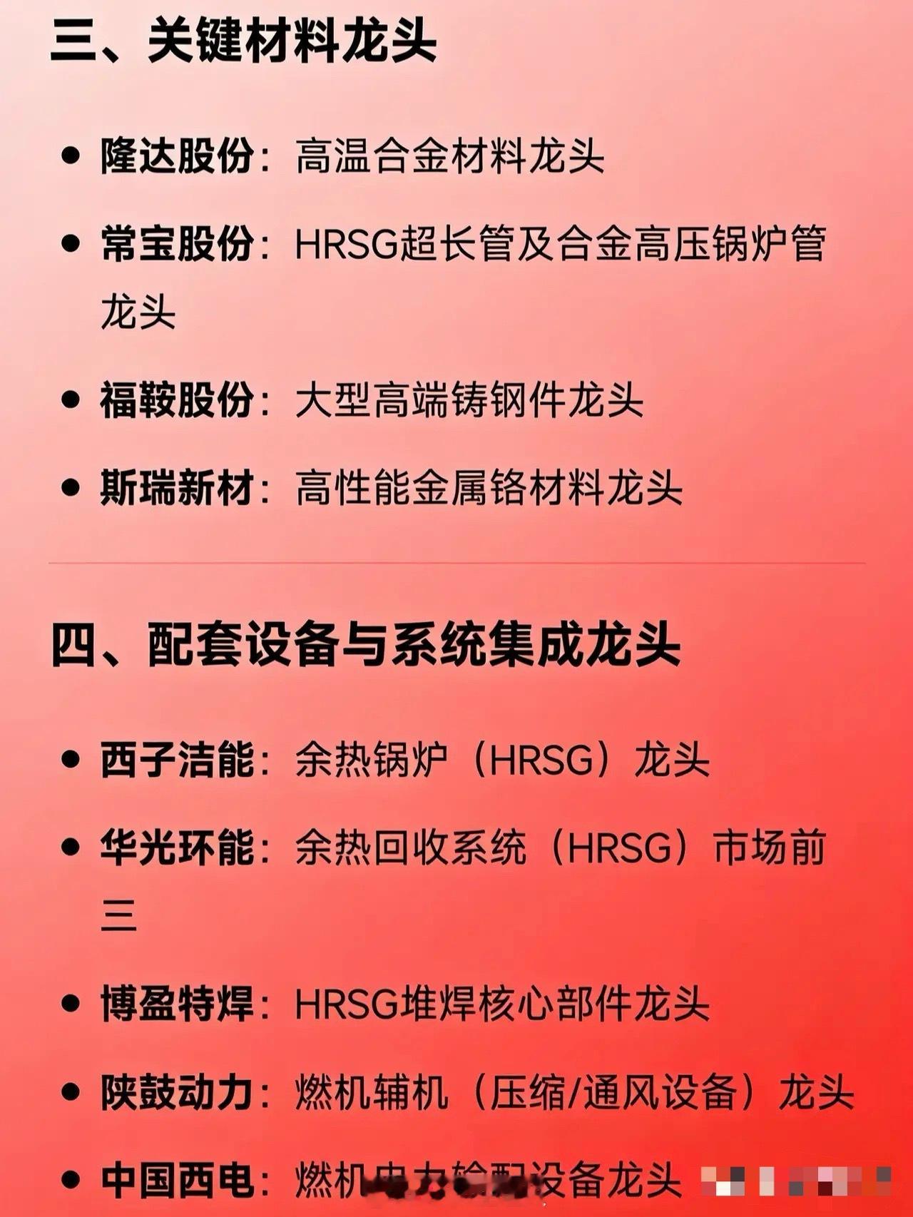 燃气轮机概念相关龙头企业汇总