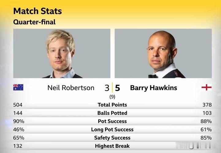 运气加持!霍师傅果然有“四强专业户”的命。 数据倒置!但霍师傅仍然以5:3击败“墨尔本机器”罗伯逊、晋级2026斯诺克威尔士公开赛半决赛。除了第八局打出了一杆80+,前七局只能依靠撕碎的20+、赢得这场1/4决赛的胜利,霍师傅的战斗力已大不如前!幸运的是,今天罗伯逊的运气也确实太背了。要是半决赛上,再度遇上吴宜泽,不知道会不会重演国锦赛上惨遭六连鞭的噩耗?