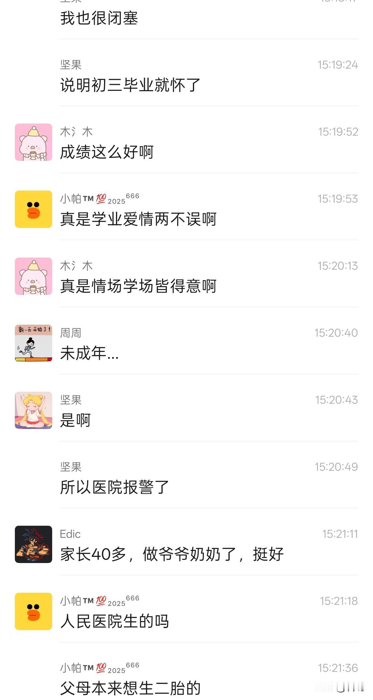 听朋友说,我们这前天有个15岁的女孩生孩子了,医院报警了,男方家给了320w的彩礼。 女孩才高一还是学霸,有望冲清华北大的那种,结果现在却面临着学校劝退。相对比男孩成绩就逊色很多,但男孩长得挺帅,家里很有钱。双方父母都很高兴。 我要是女孩子家长,我一点也不高兴,有种好白菜让猪拱了的感觉,而且又不是卖女儿。学霸啊,读出来进了好的企业,年薪轻松破50个起。 就这么早早生孩子了,这怎么说呢?人家开心愿意就好。