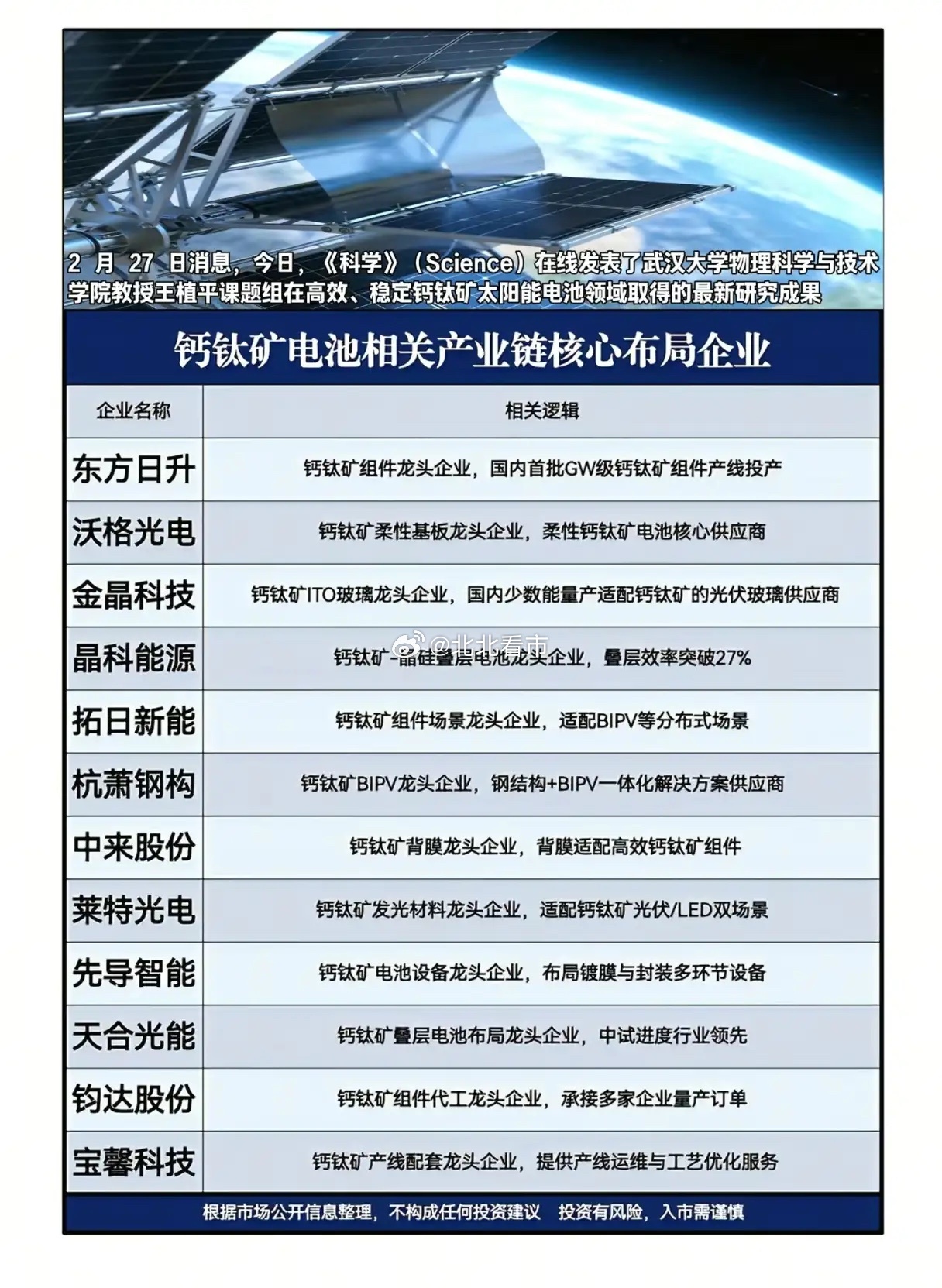 当然,热情归热情,数字归数字。这张名单里有些个股近期的融资盘已经堆得很高,2月初板块还经历过一波剧烈回调。技术突破是底牌,但市场情绪永远是牌桌上的变量。只是有一点越来越清晰:光伏的下半场,名字已经写好了——就叫钙钛矿。