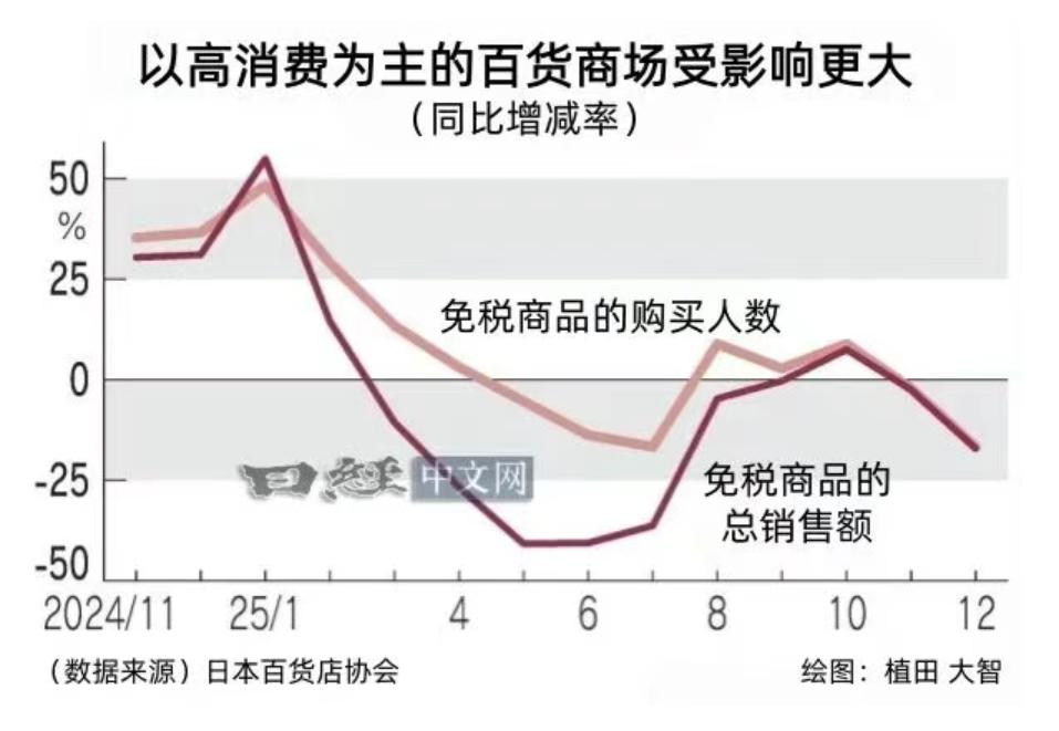 中国游客不去日本后,最近日媒做了一则调研,当地商家没有最差只有更差。 2月18日,日本国家旅游局公布了1月日本外国游客数据,其中中国游客人数同比大幅减少60.7%,只有38.5万人了,连续两个月出现负增长。机场数据也是差不多,1月关西机场中国旅客为27万人,较去年同期减少近60%。 对于日本商业来说,中国游客还是很重要的。对此,日媒针对当地餐馆、服装店、食品店、工艺品、百货大楼等做了调研,结果情况没有最差只有更差。 具体来看,服装店、食品店、工艺品等销售下滑影响小点,正如一位商家直言“就算一大群人进店,往往也就买一个点心之类的”,所以下滑小一些。受影响最大的是餐馆和百货大楼,有的餐馆营业额下滑了80%,12月免税商品购买人数、免税总销售额则分别下滑16.7%、17.1%。1月份情况估计更差,比较去的人更少。 百货大楼下滑很好理解,里面高端奢侈品较多,以前很多中国游客进去扫货,但现在去的人减少买的也少,同时中国国内免税业发展迅速,例如刚过去的春节,海南离岛免税总销售额 27.2 亿元、同比 + 30.8%,创历史新高。 国内折扣业的普及也在抢日本奢侈品生意,去年下半年以来,诸多奢侈品大牌在内地搞内购会,一些奢侈品内购会被干到五折,买家络绎不绝。就在2月27日,特卖平台唯品会也公布了2025业绩,其超级大牌日和超级品类日业绩同比增长17%,在唯品会上,COACH、巴宝莉有时能到三五折,能拉动不少消费回流。 面对中国游客缺失,日本商家其实没有更好的办法,普遍的想法是“真正喜欢日本的人仍会前往”,比较悲观的则已经不再针对中国大陆客群做对策,例如开发不依赖中国游客的商品。对于日本旅游业来说,出手阔绰的中国游客已越来越少。