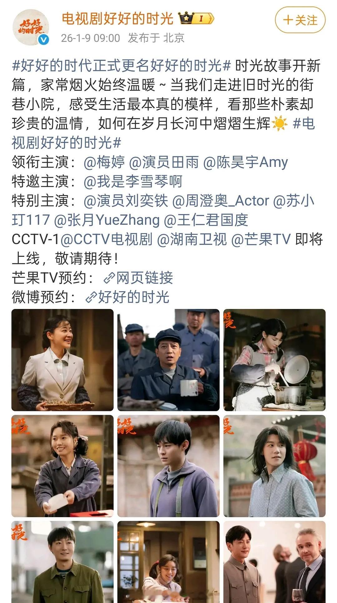 现在整个剧圈大盘,全指望梅婷这部新剧来救了!接档《太平年》,梅婷 × 年代剧这个配置太稳了。押爆!收视和网播大盘,就靠《好好的时光》来扛了!