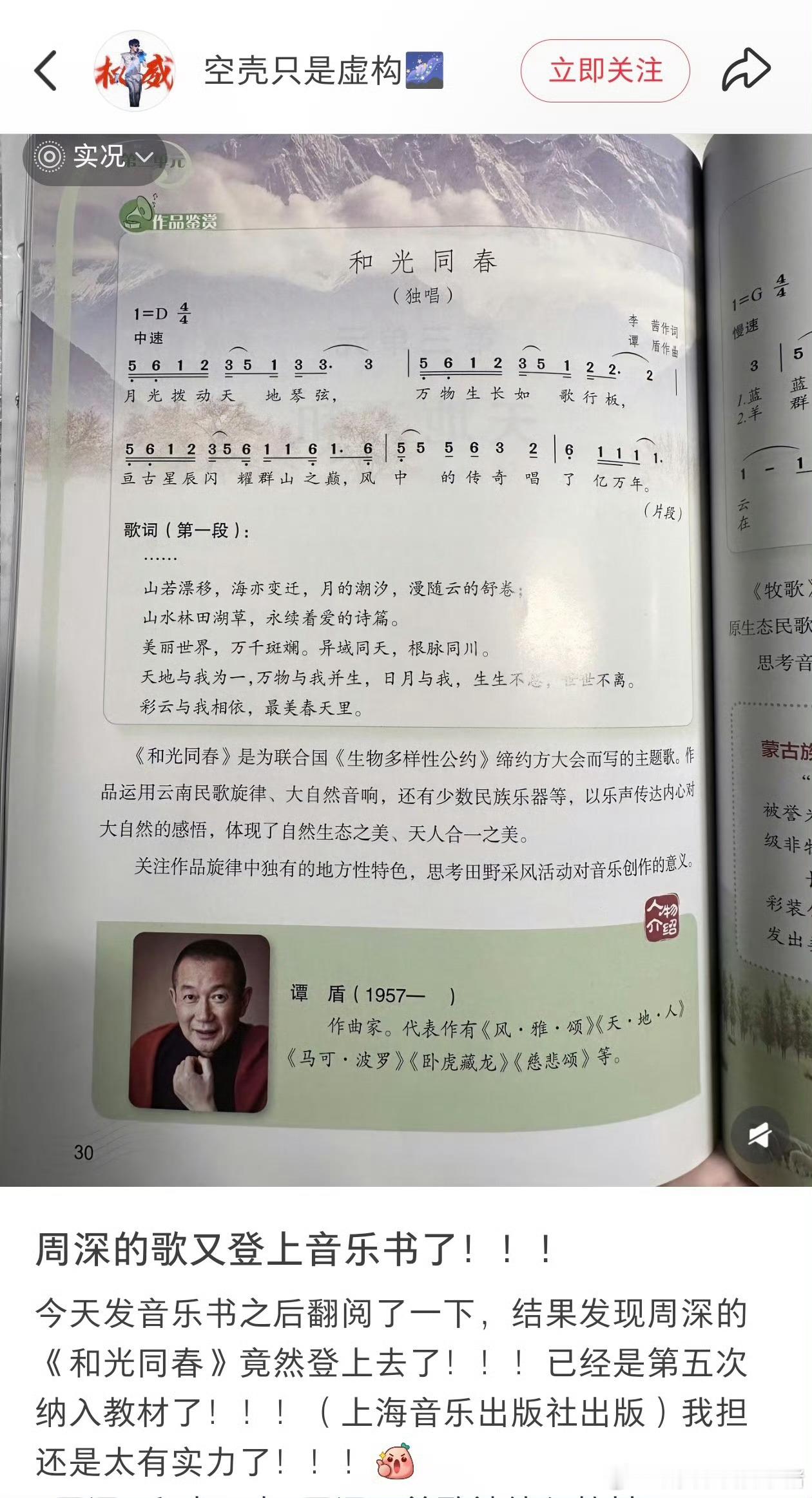 周深五首歌被纳入九年义务教育教材,荣誉