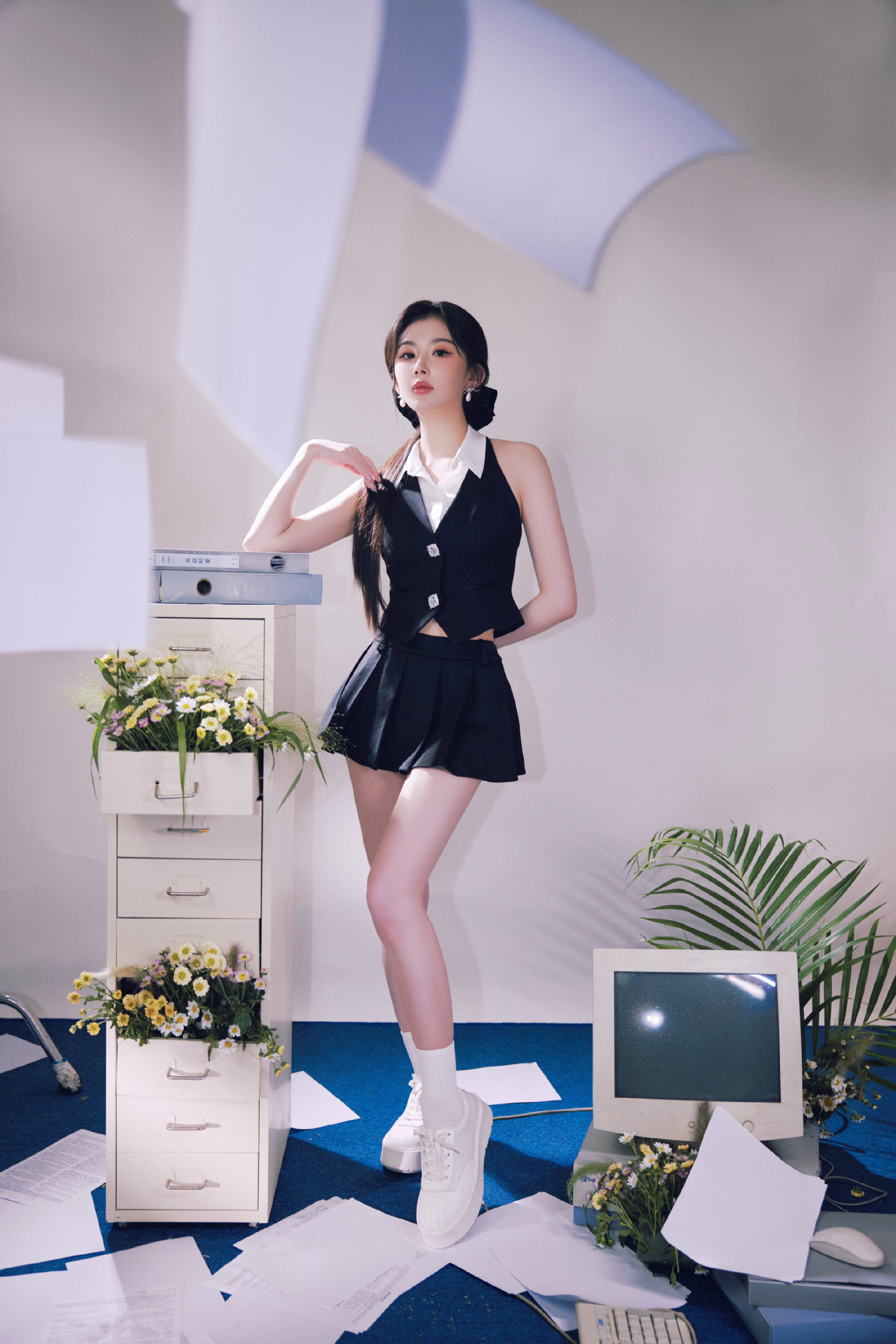 孔雪儿小黑裙穿搭,元气能量,嗨翻职场。孔雪儿