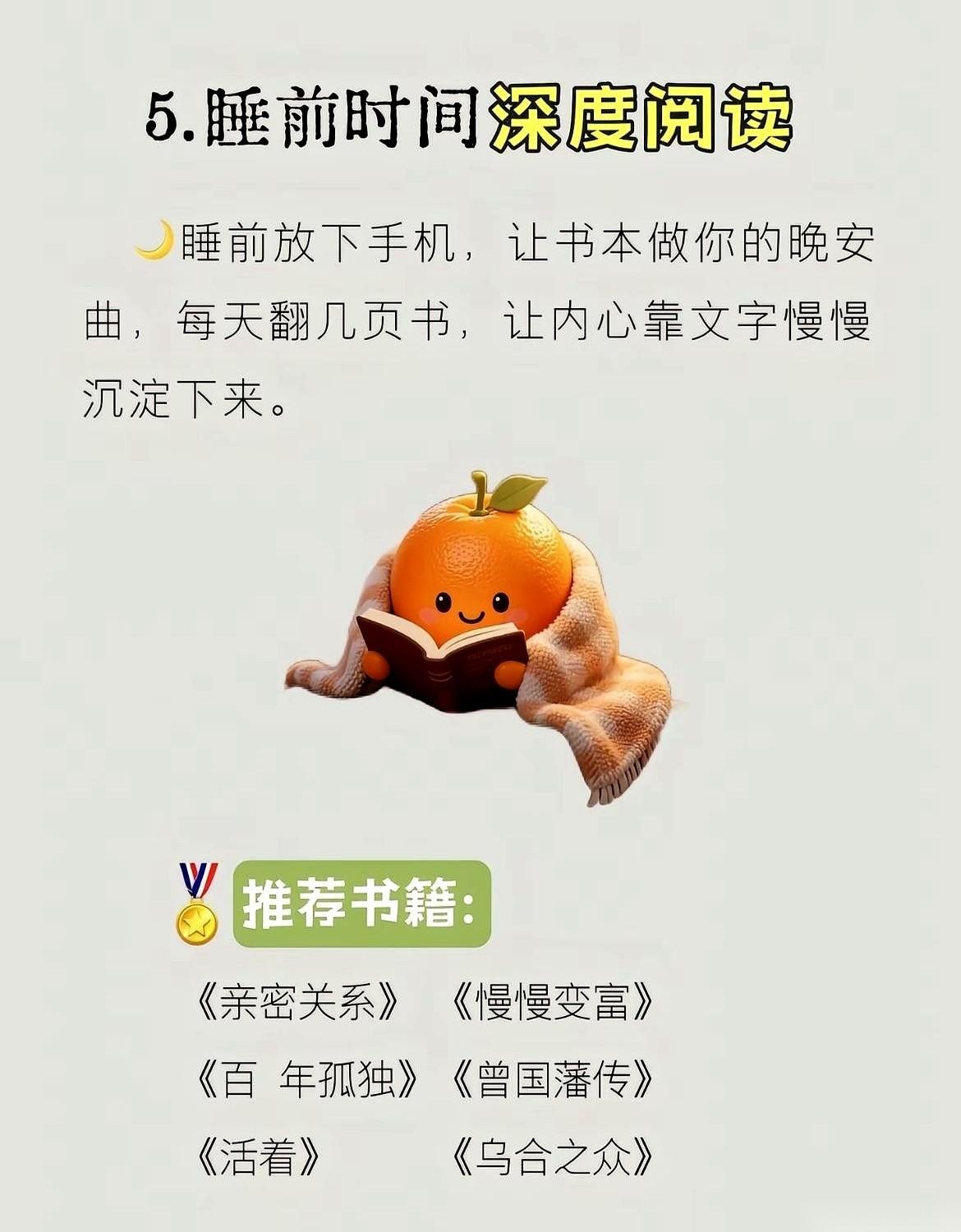 手机屏幕的光映在脸上,凌晨一点半,又是什么都没干的一天。 手指还在机械地划着,别人的生活、别人的段子、别人的精彩,灌进眼睛,脑子却越来越空,心口堵得慌。 有人说,从现在开始,把手机扔到一边,就用两个月,死磕5件事。 第一件,立刻站起来,别窝着。哪怕只是靠墙站15分钟,或者跟着视频跳帕梅拉,让汗从毛孔里钻出来,而不是让眼泪从眼眶里掉出来。 第二件,戒掉奶茶和外卖。不是让你绝食,是让你亲手给自己做一顿饭。听着油在锅里滋滋作响,看着蔬菜断生变软,那种掌控感,能把心里一半的焦虑给烫平了。 第三件,用看八卦的时间,啃一本书。就找个舒服的角落,开一盏小灯,让纸张的墨香味代替手机的辐射味,一页一页翻过去。你会发现,故事里的世界,比朋友圈里的世界,干净多了。 第四件,整理。不是大扫除,是每天扔掉一件没用的东西,整理一个抽屉。当一个角落变得清爽,你会感觉连呼吸都顺畅了,那种把失序的生活重新拧回正轨的感觉,会上瘾。 第五件,和自己待着。不是发呆,是完完整整地、不被打扰地放空十分钟。不去想工作,不想别人,就感受自己的呼吸。 两个月,就60天。 60天后,镜子里那个人,眼神是不一样的。不是那种刷了一夜短视频后的疲惫和空洞,而是一种篤定,一种我知道自己在干嘛、我要去哪里的清澈。 所以,是继续在屏幕里看别人的热闹,还是从今晚开始,给自己的人生,写一个不一样的开头?