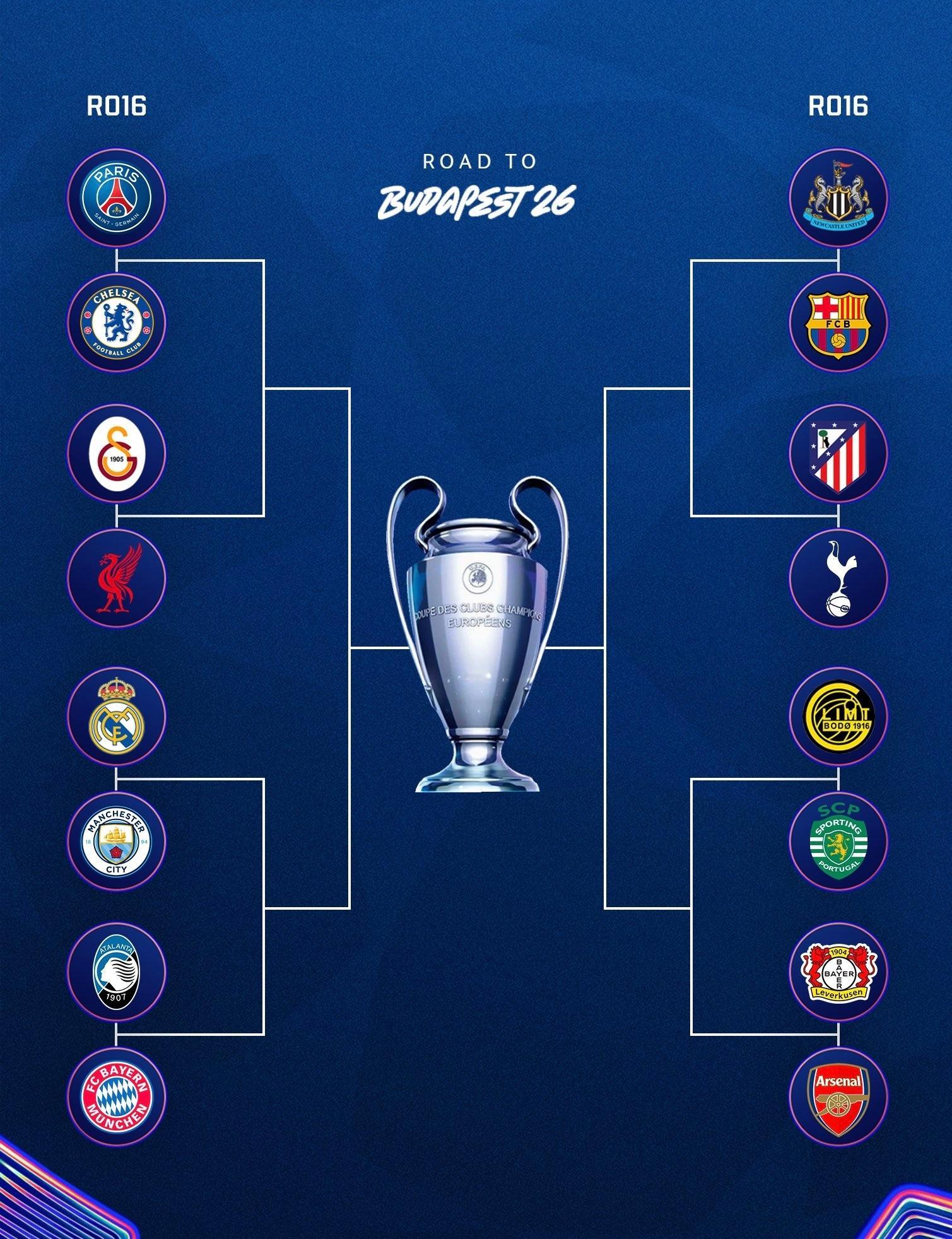 【欧冠16强🔥】 2025-26赛季欧冠联赛 1/8决赛抽签一览:
