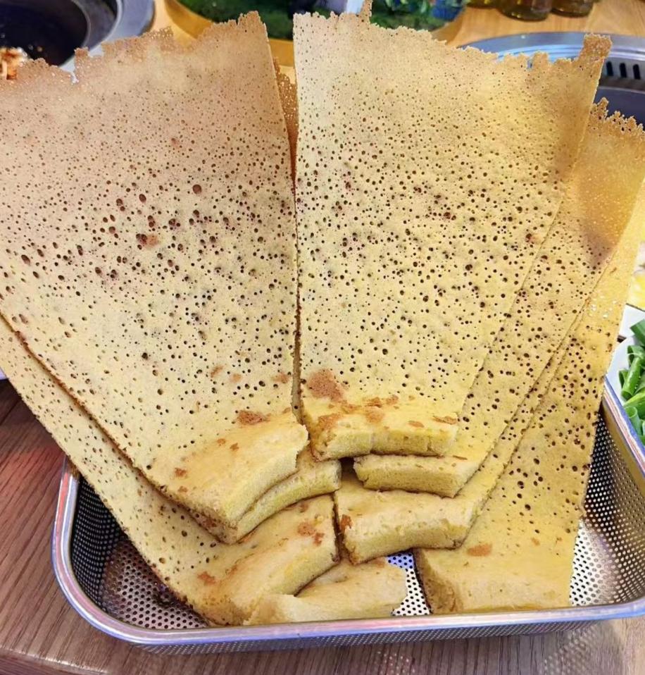 继续保持清淡饮食,好好清理下肠胃! 不知道这种饼是怎么做出来的,特别是上面的小空洞,看着特别可爱,而且有食欲。 配上一点小拌菜,吃起来相当爽口。