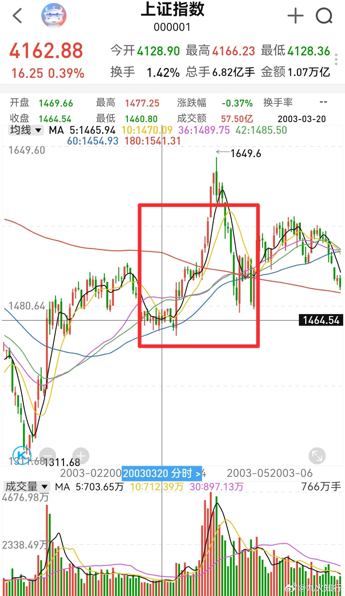 2003年3月20号,美国入侵伊拉克,A股表现淡定,后来还有一小波多头格局。