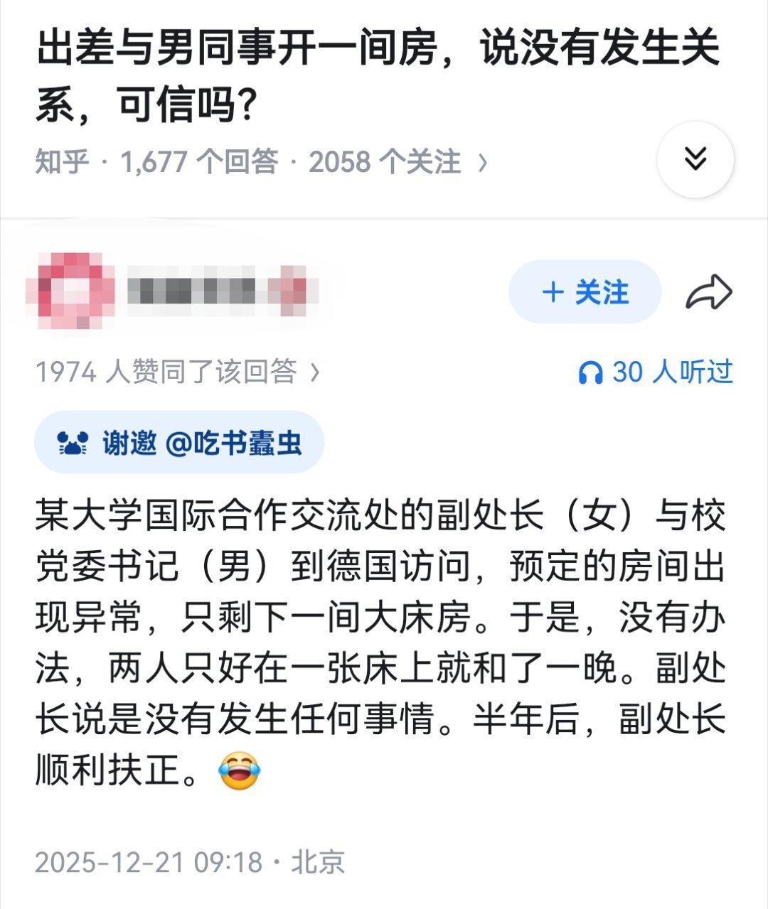 出差与男同事开一间房,说没有发生关系,可信吗?