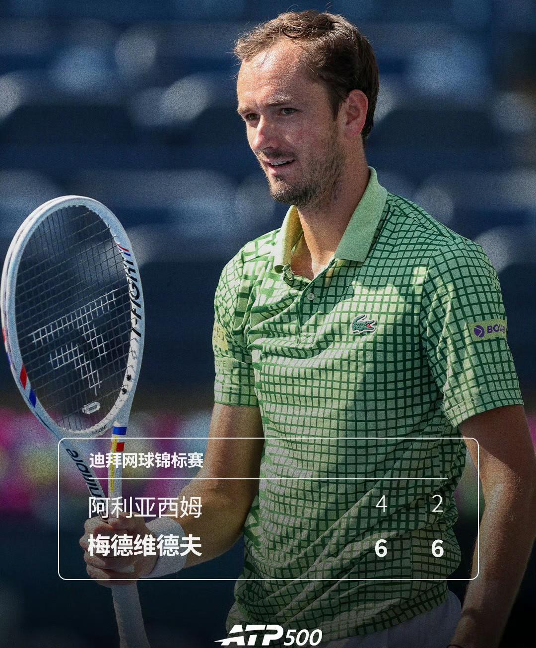 梅总定律:从来没在同一个城市赢过第二个冠军。这次可能要变了? ATP500迪拜网球锦标赛半决赛赛果: 梅德韦杰夫6-4/6-2阿利亚西姆 格里克斯普尔7-5/7-6(6)卢布列夫