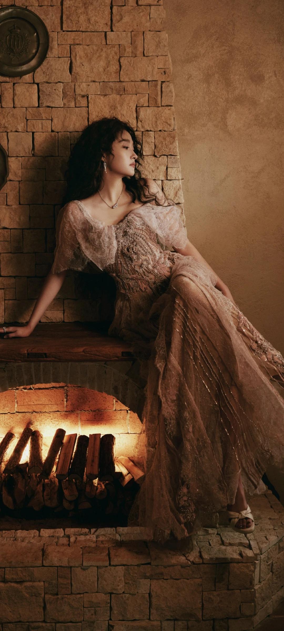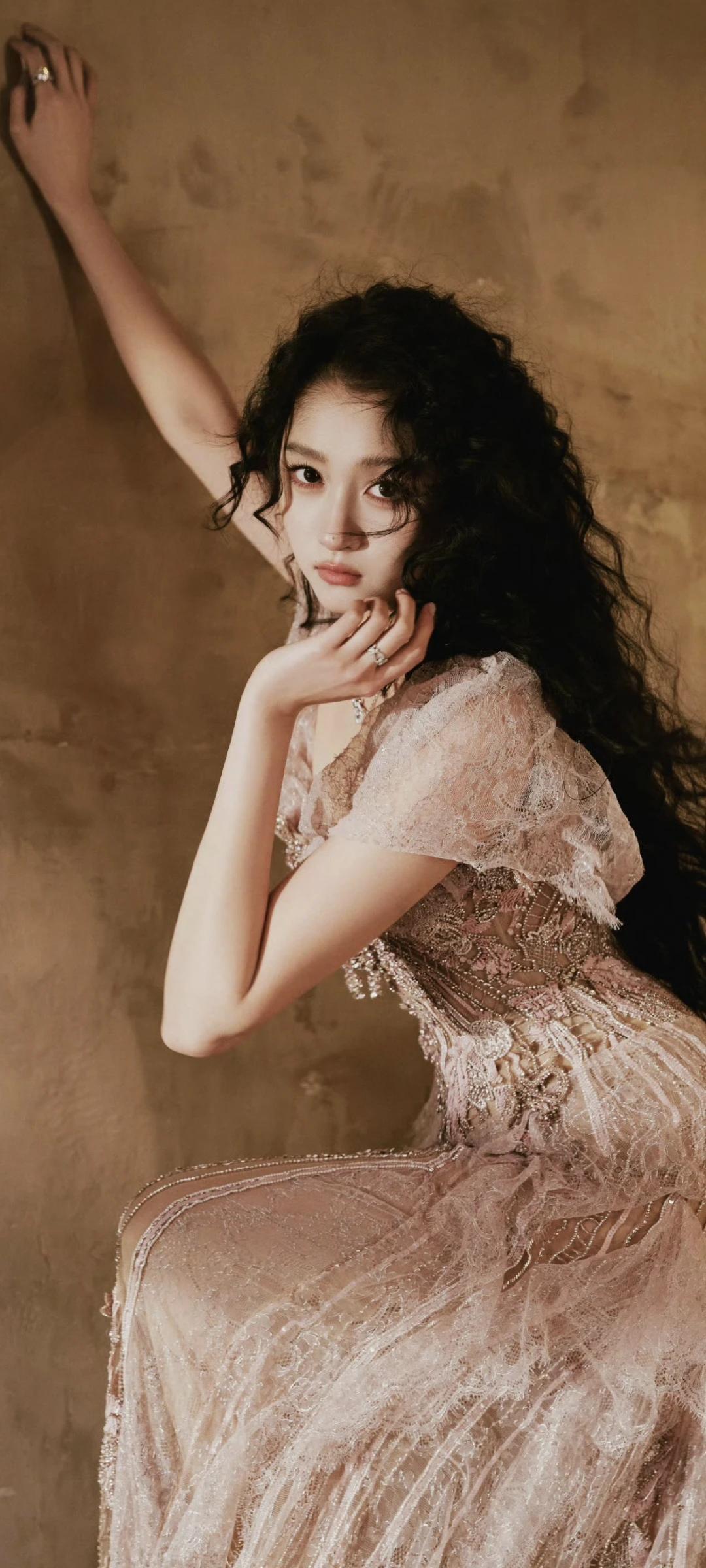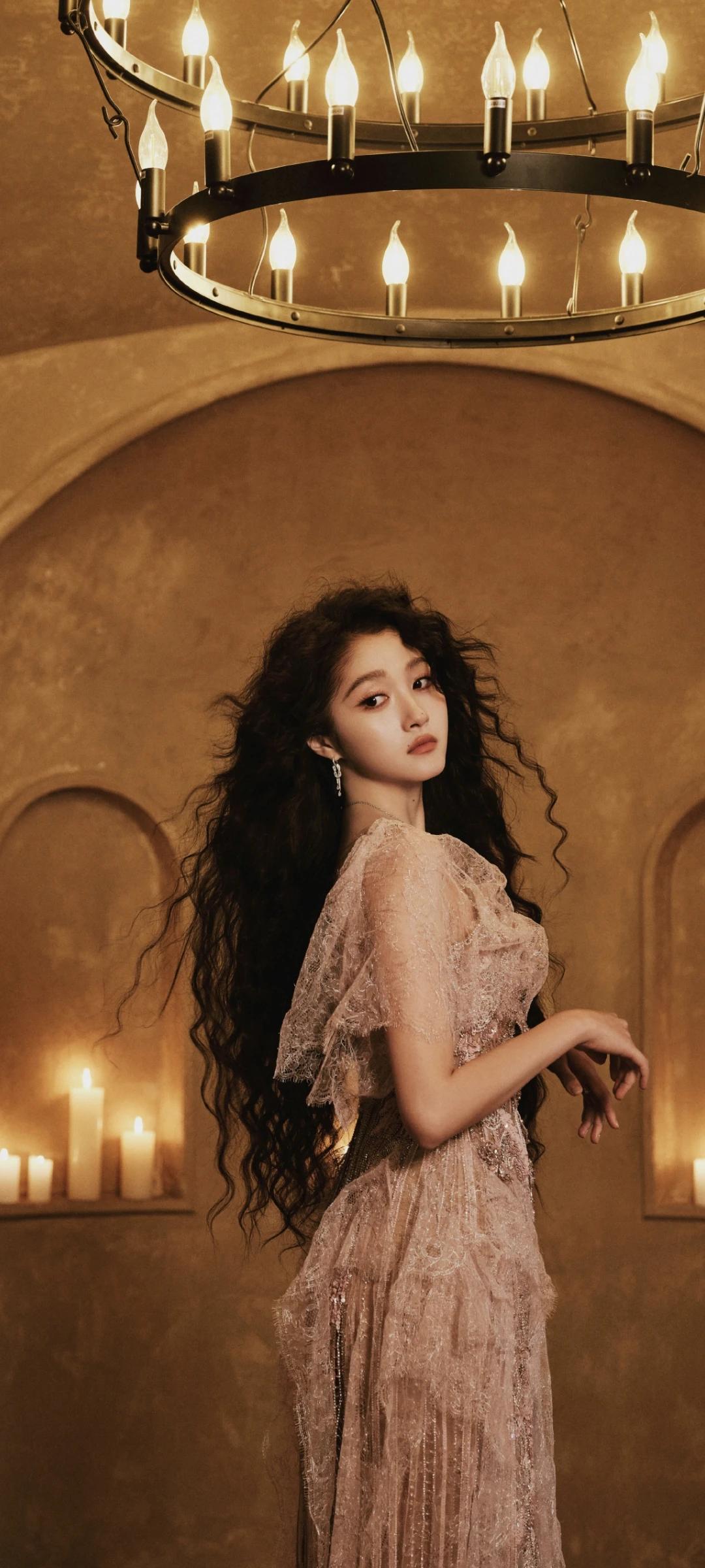 关晓彤写真壁纸~闪钻蕾丝裙+蓬松大波浪 散出公主的柔光!