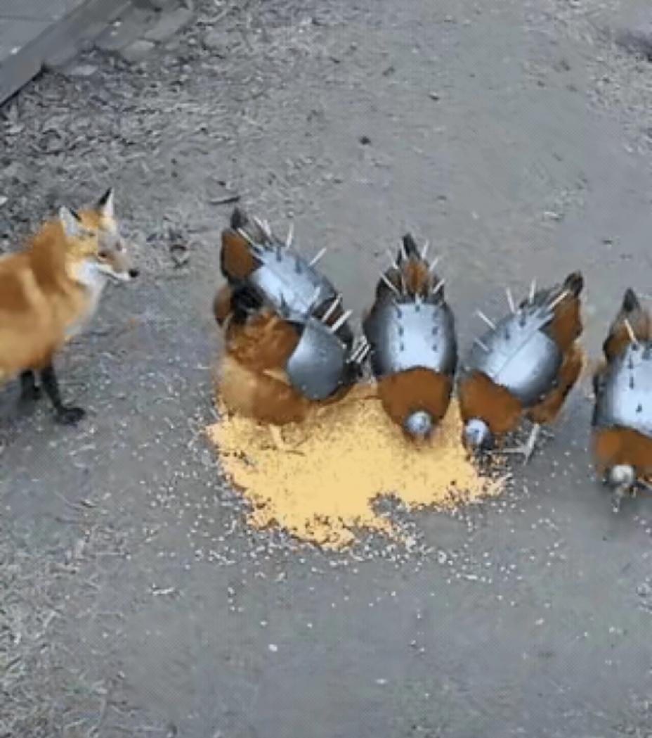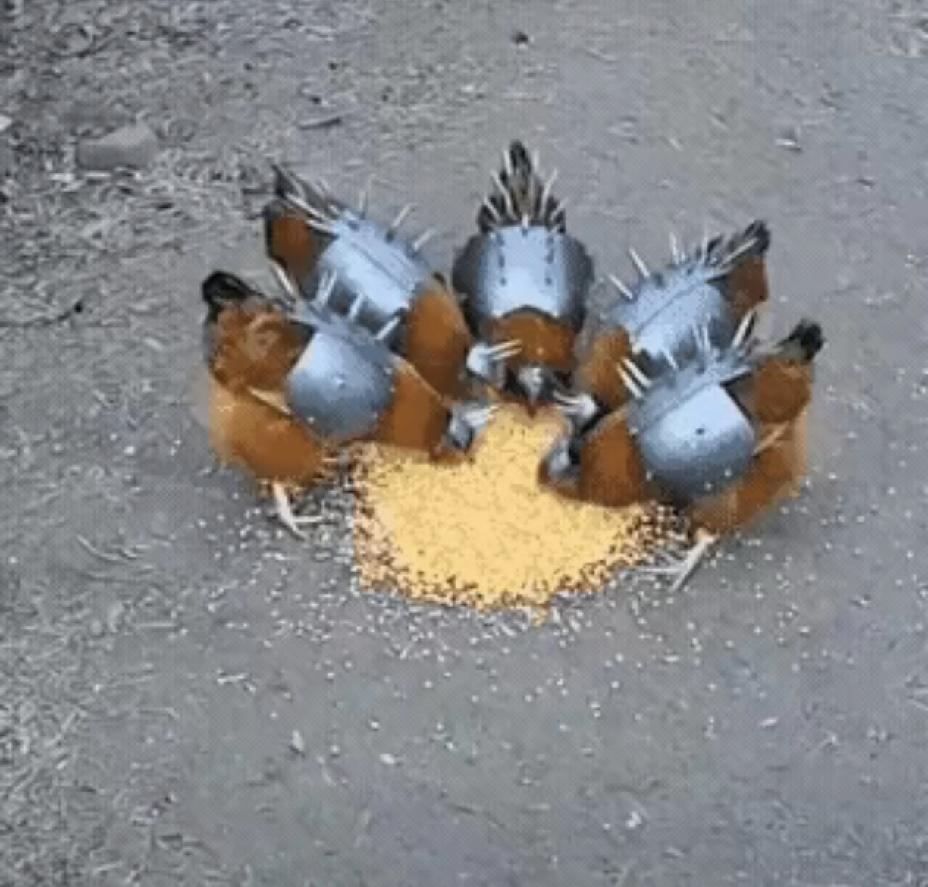 人才哇,自家养的鸡全副武装,原来是防狐狸🦊的。 狐狸一见全副武装的鸡群,愣是下不去嘴,只能眼巴巴看着,一脸生无可恋的模样。狐狸 昂首挺胸的鸡 野鸡鸡 公鸡野鸡 会整活的鸡 罩狐狸 防鸡打架