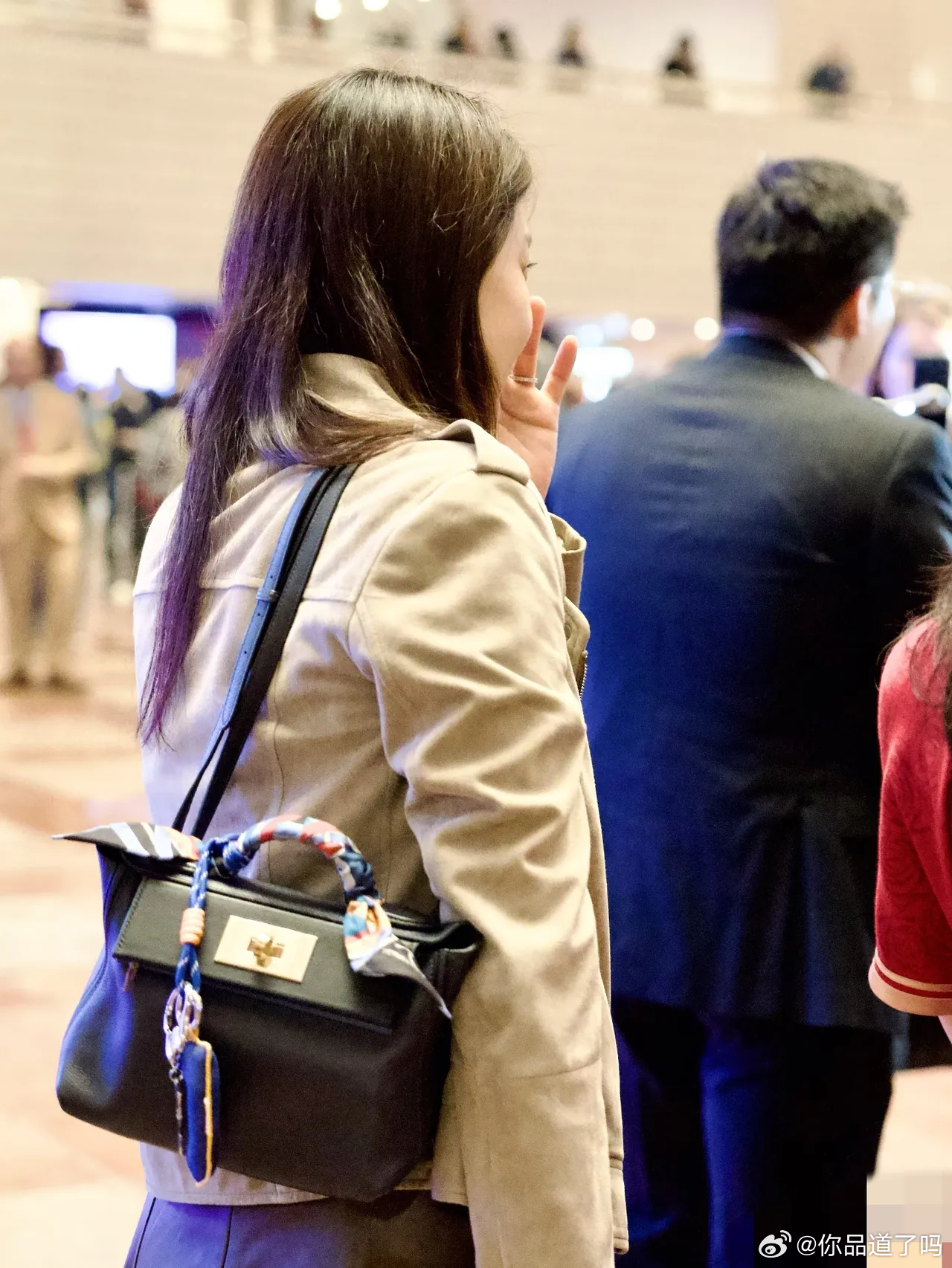 郭晶晶背了一款黑色的包包,这款包包是爱马仕的,价格不便宜,让她顿时有了贵妇气质。