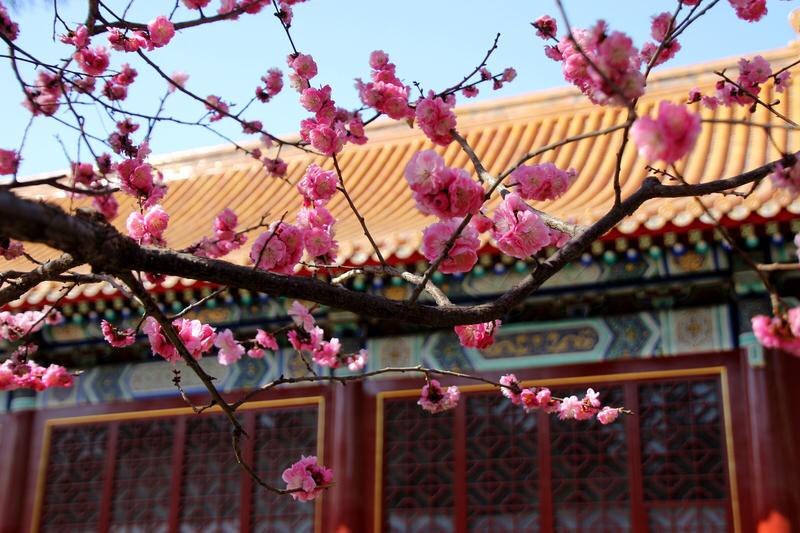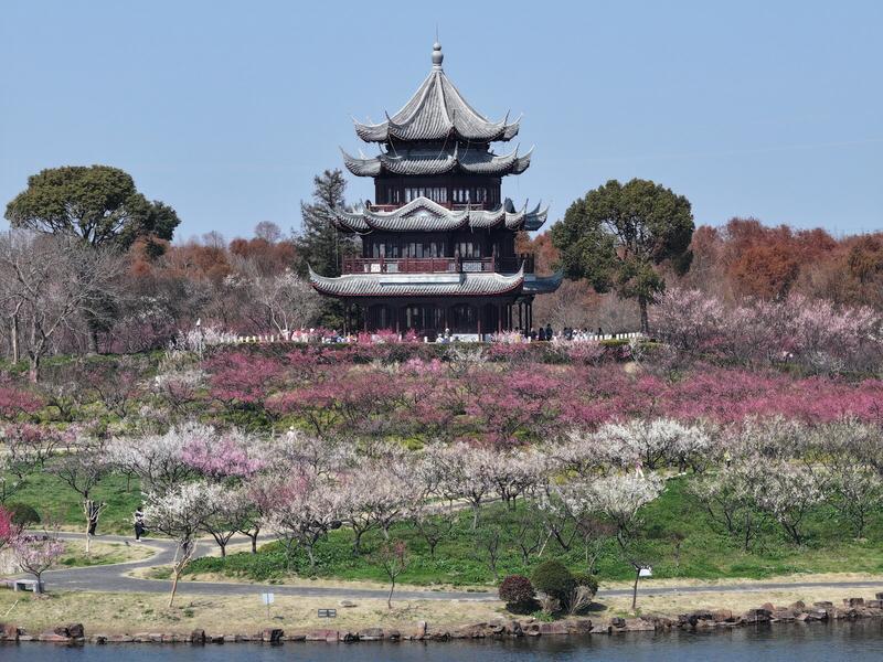 上联:梅香拂袖,一江春暖似画卷; 下联:鹤影凌空,千峰翠色入诗来。